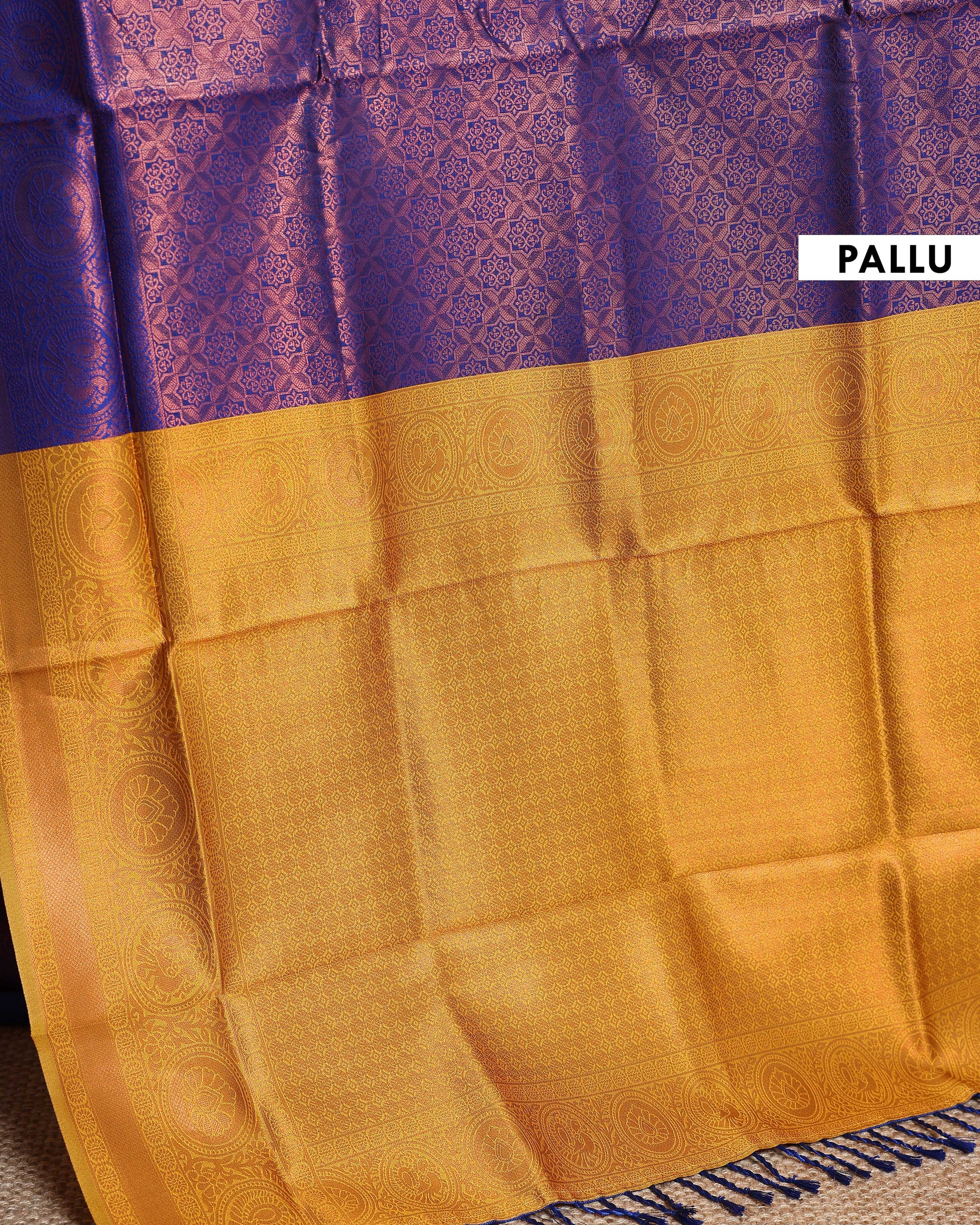 Exquisite Litchi Silk Saree with Traditional Zari Woven Motifs and Rich Pallu Design - Navy Blue