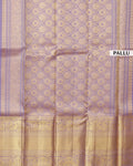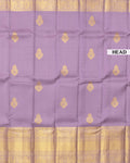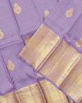- This elegant handwoven Kanchipuram Pure Silk saree in a serene lavender a rich gold zari pallu and border, making it a perfect choice for weddings and festive occasions