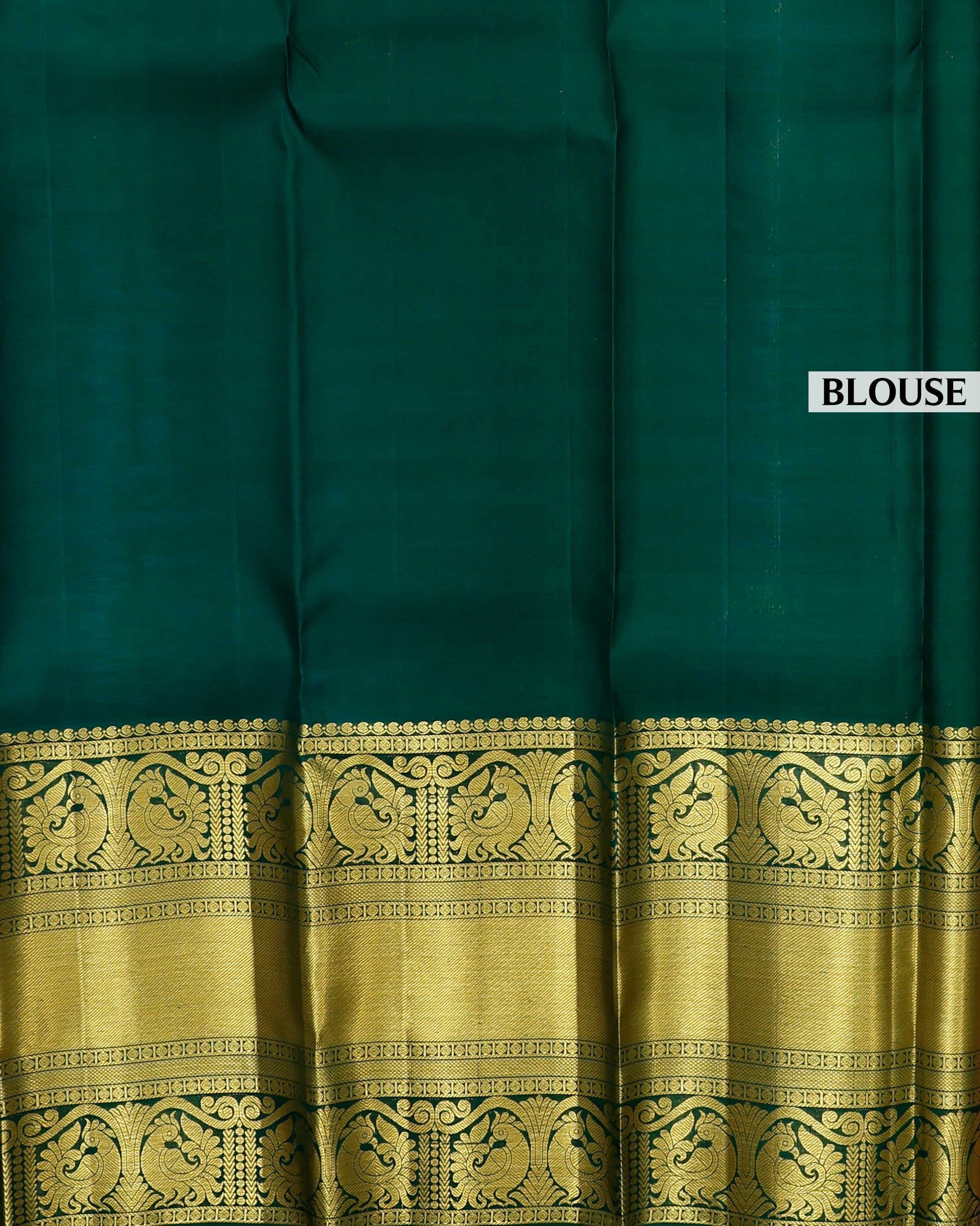 The intricate traditional designs showcase the timeless craftsmanship of authentic Kanjivaram weaving.