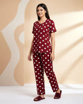 Women's Polka Dot Print Short Sleeve Night Wear - Maroon