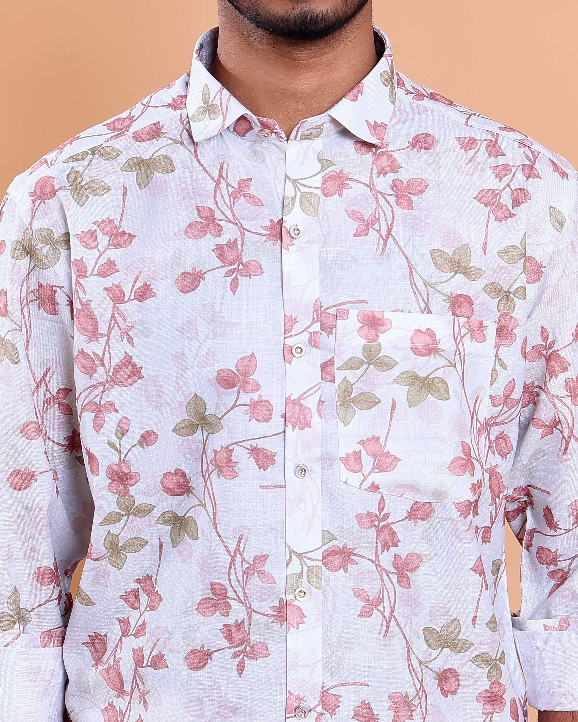 - Discover the perfect blend of tradition and contemporary style with this men's cream floral print shirt and white dhoti set, crafted for comfort and elegance.