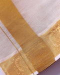 Men’s Classic Handloom Cotton Dhoti (9×5 Meter) with Traditional Gold Border - Off White
