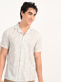 Men’s Native Bull All Over Printed Half Sleeve Casual Shirt with Button Down Collar - Off White
