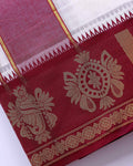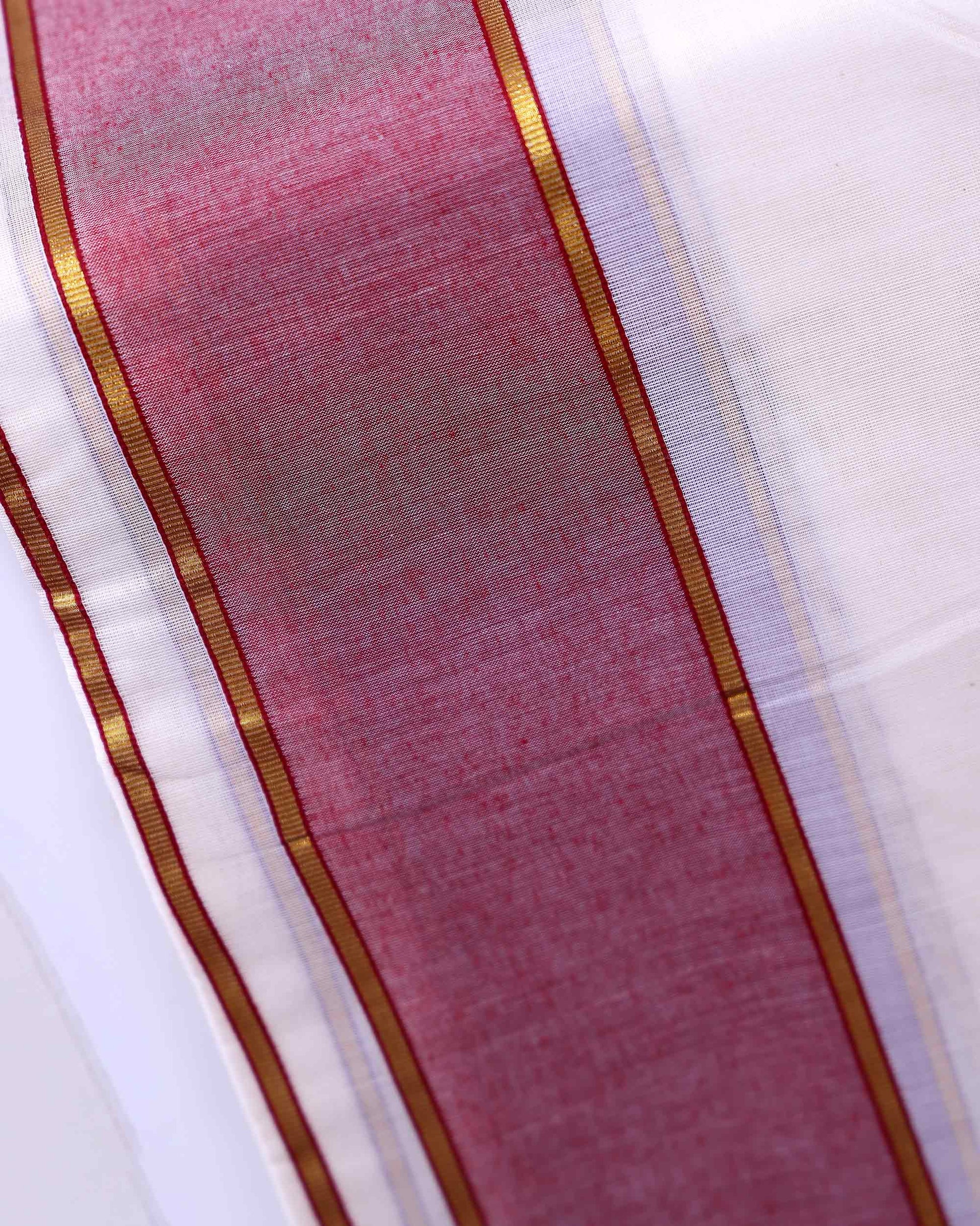 - Embrace timeless tradition with this men's pure cotton white dhoti, featuring an elegant and durable maroon border with intricateideal for weddings, festivals and religious ceremonies