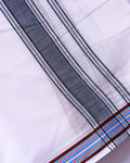 - Experience comfort and tradition with this pure cotton ultra white handloom dhoti.Perfect for festivals, daily wear, or formal occasions, featuring a classic grey striped border