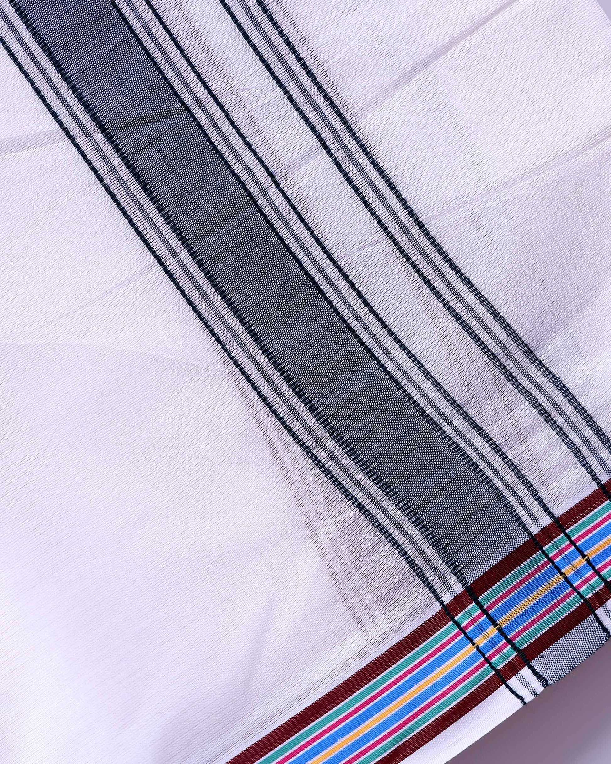 Men’s Traditional Handloom 10*6 Meter Cotton Dhoti with Multi Border - White
