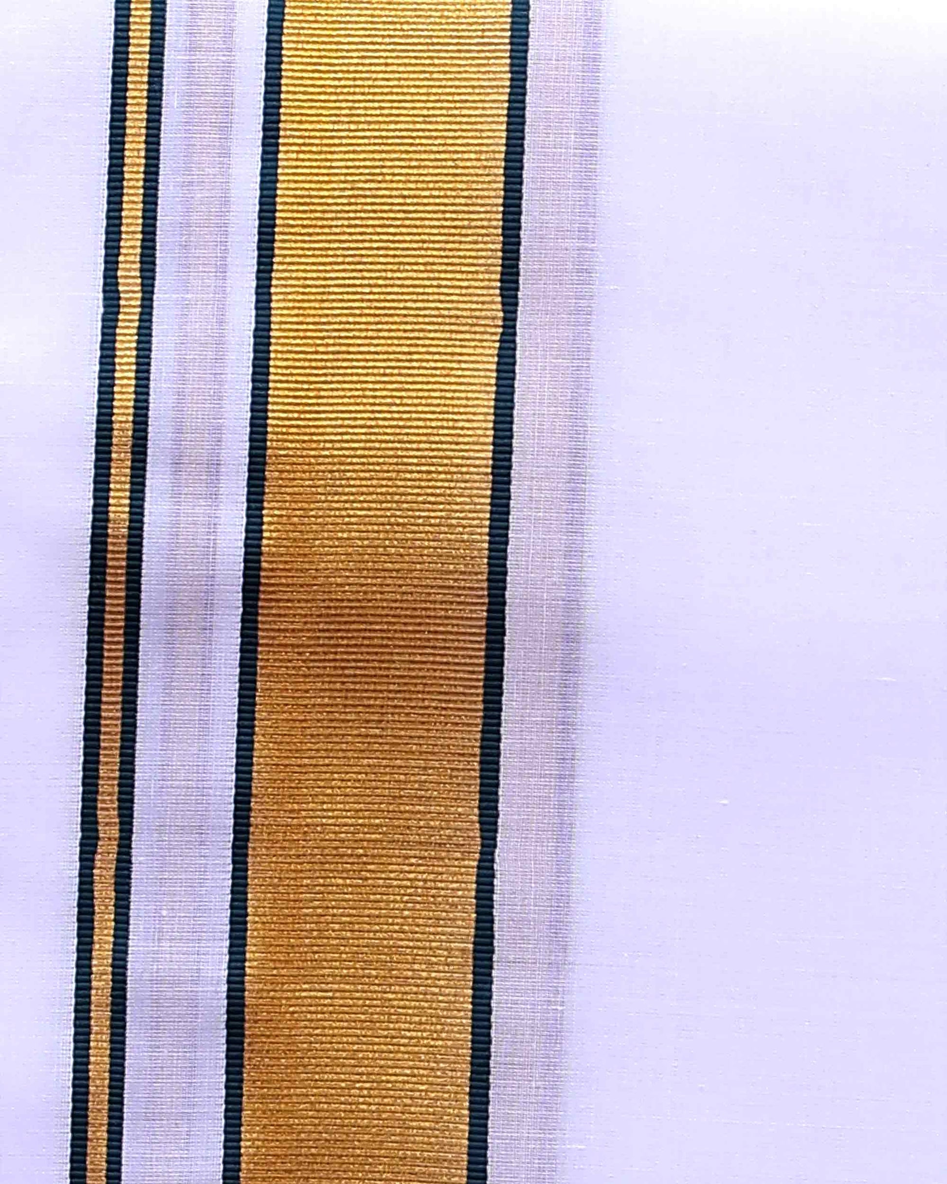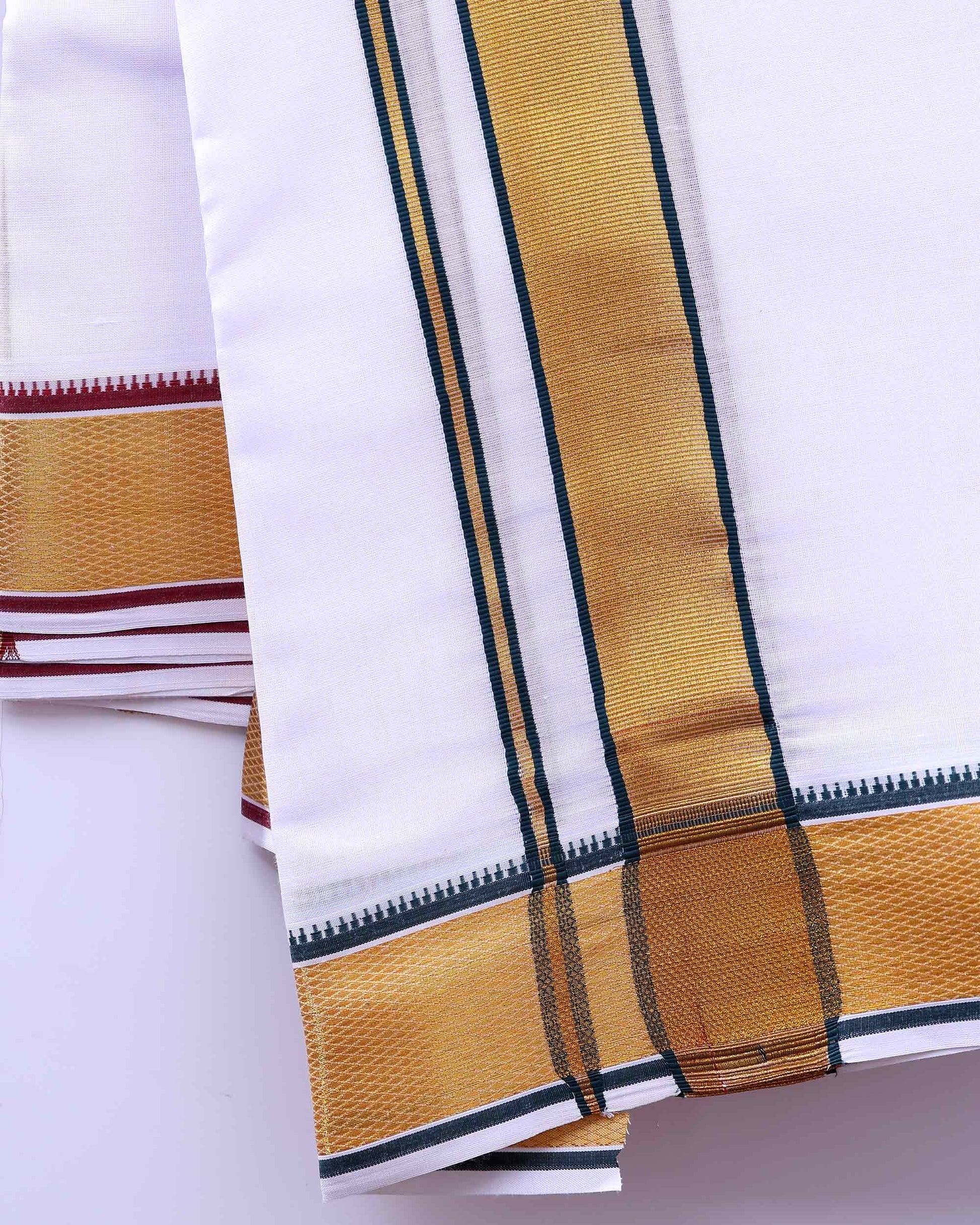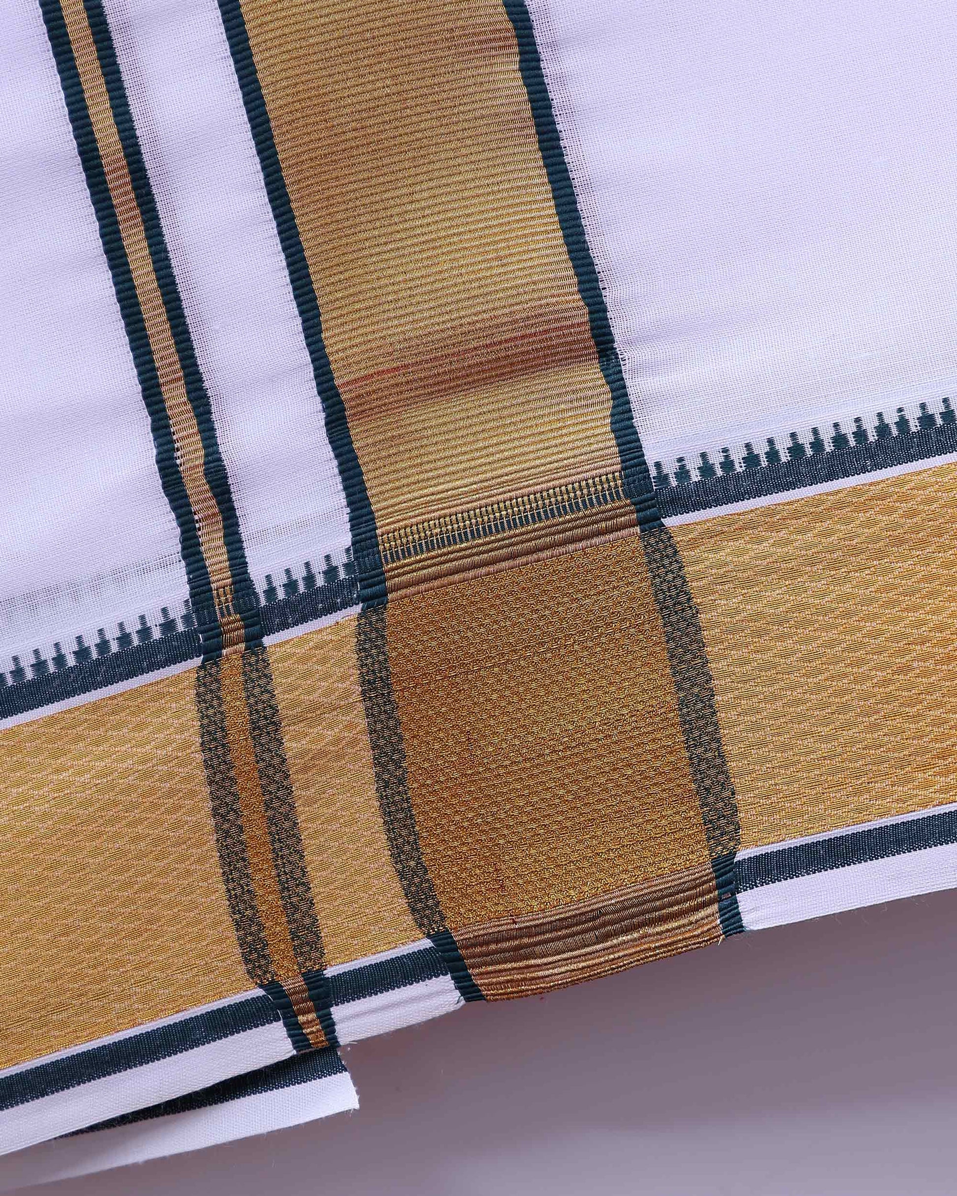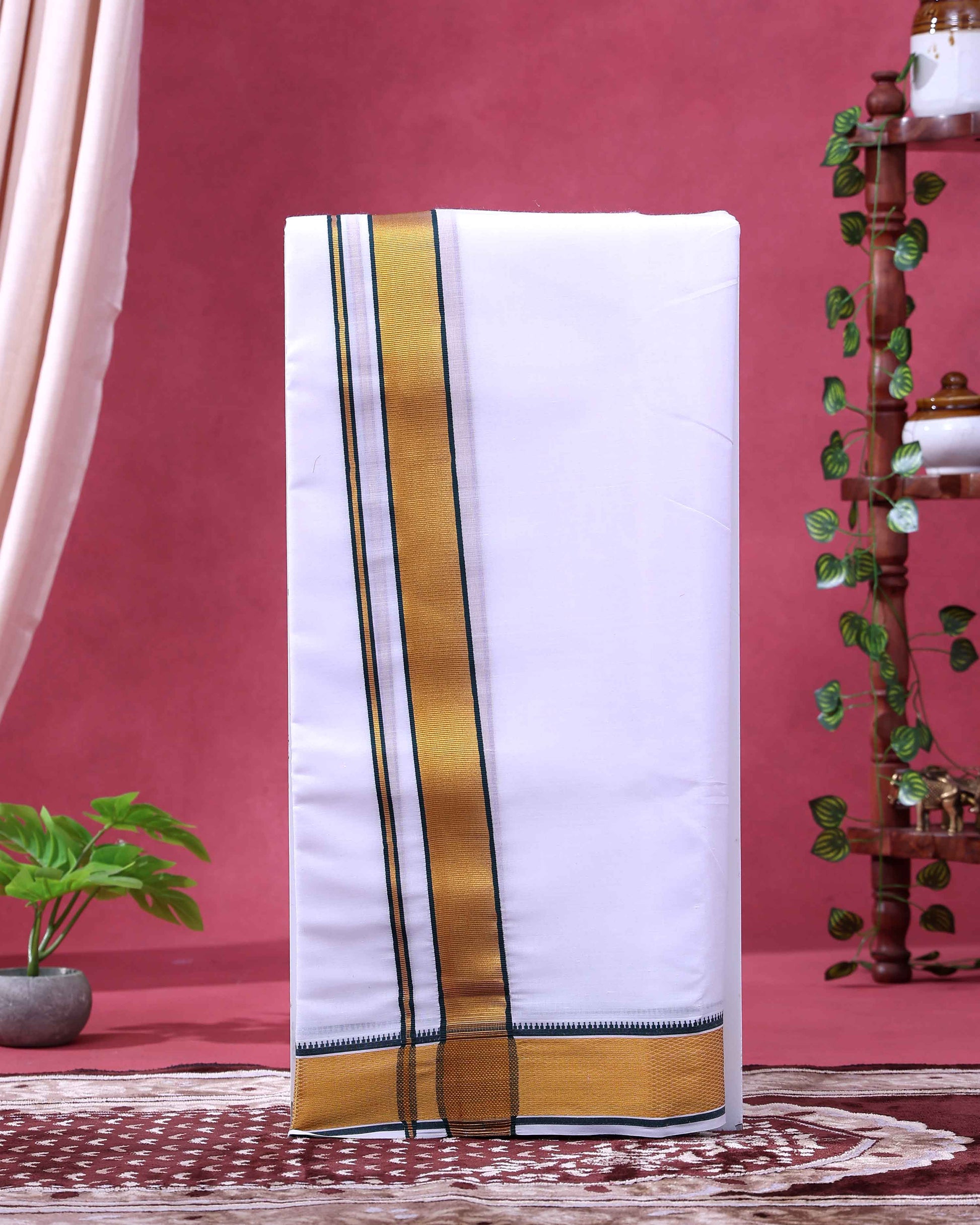 Men’s Traditional Handloom 9+5 Meter Cotton Dhoti with Gold Border - Off White