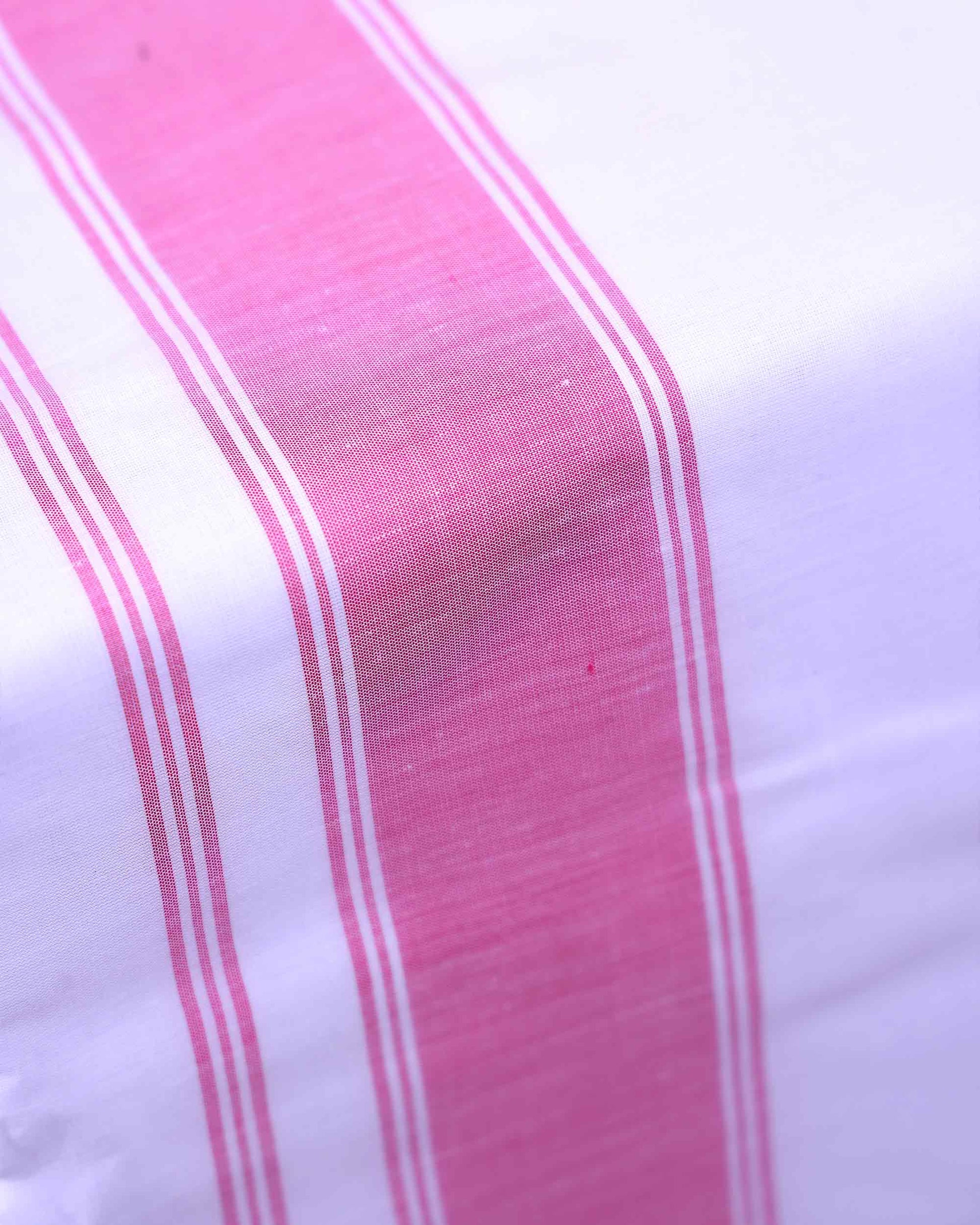 - Elevate traditional style with this pure cotton, handloom dhoti featuring an elegant pink and multi color border, perfect for men's festive and temple wear.