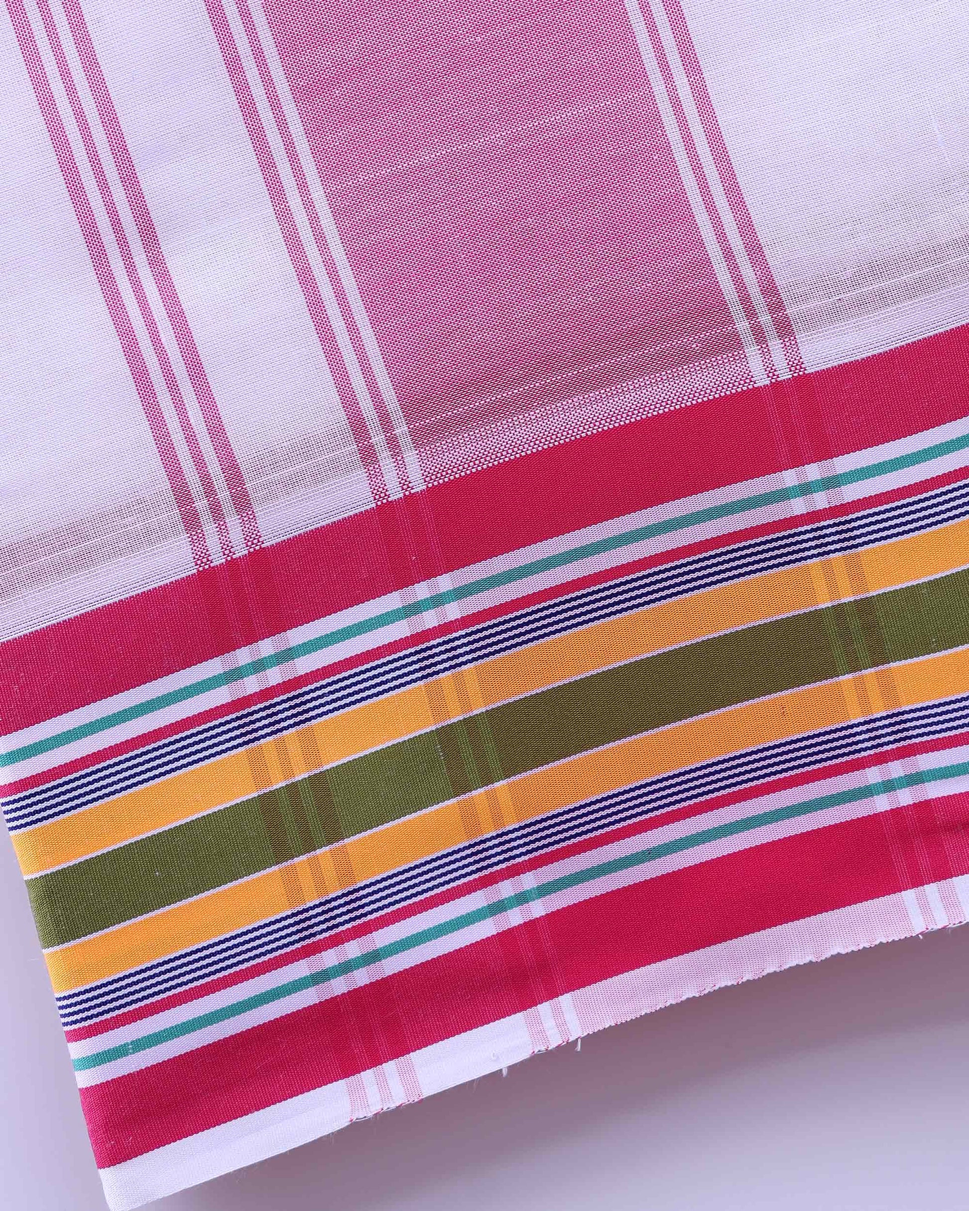 Men’s Traditional Handloom 9*5 Meter Cotton Dhoti with Multi Border - Off White