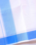 Men’s Traditional Handloom 9 Mulam Cotton Dhoti with Blue Border - Off White