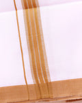 - Elevate your traditional wardrobe with this elegant white men's dhoti a classic Brown zari border
