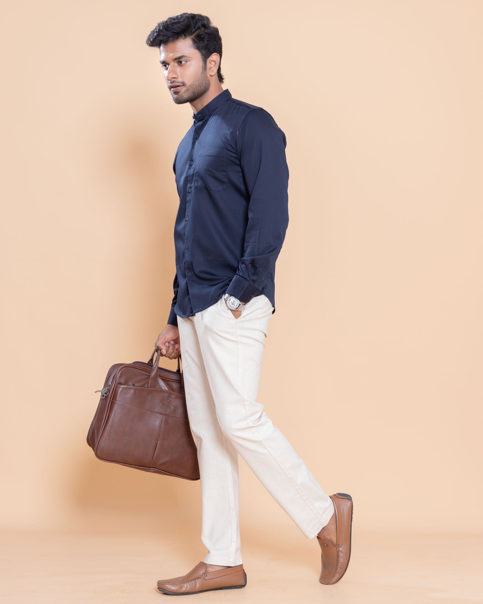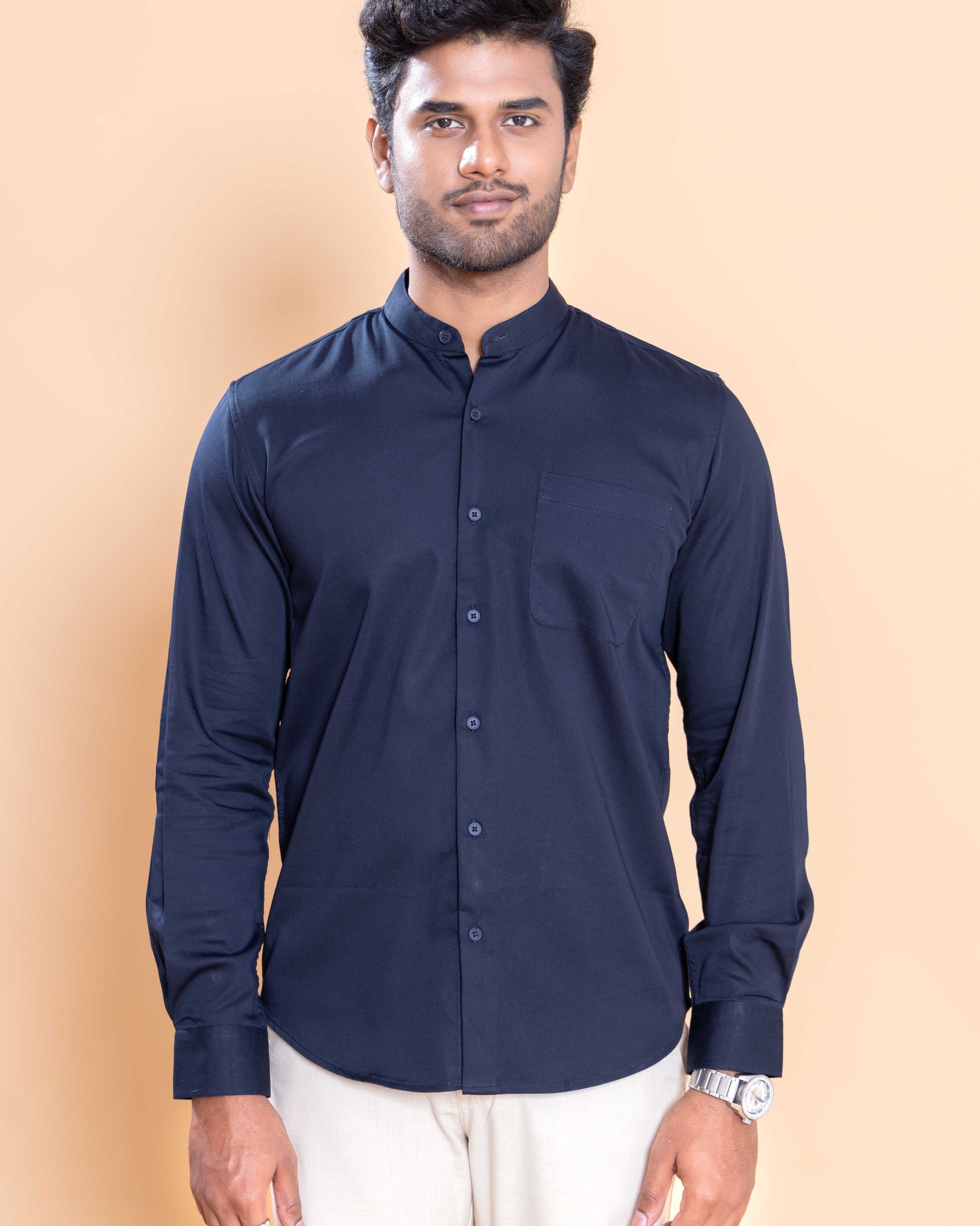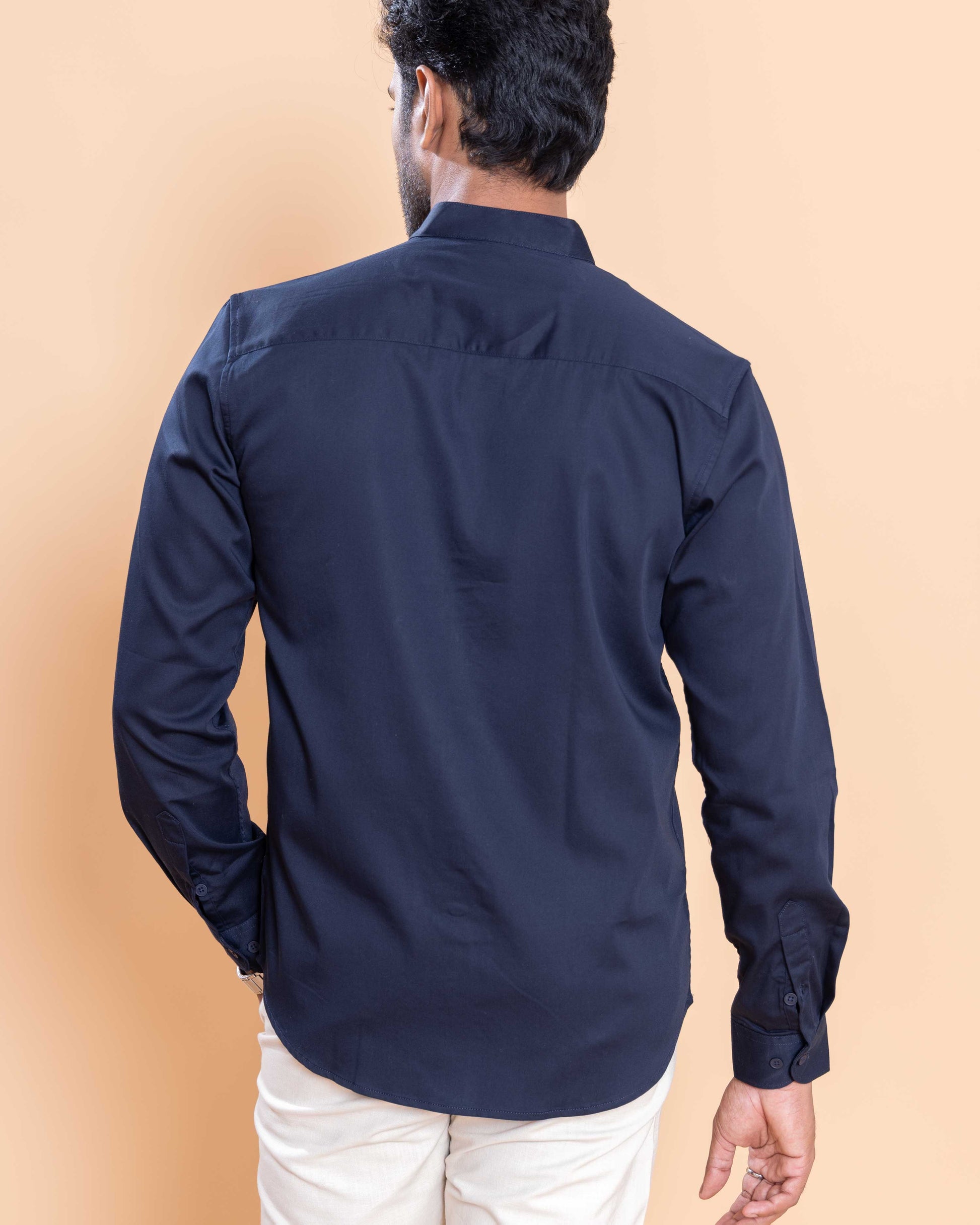 Nativebull Men Solid Full Sleeve Cotton Blend Shirt - Navy Blue
