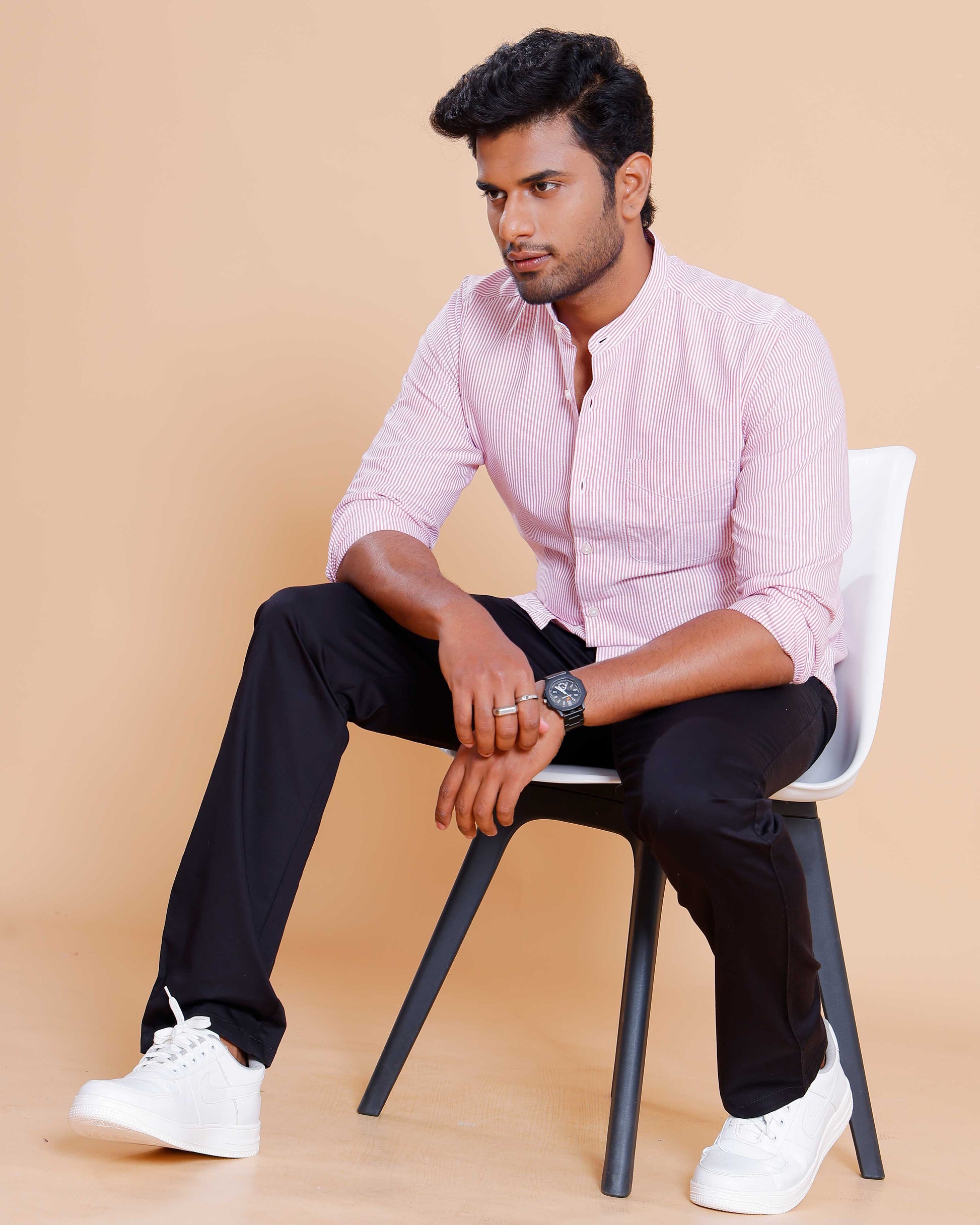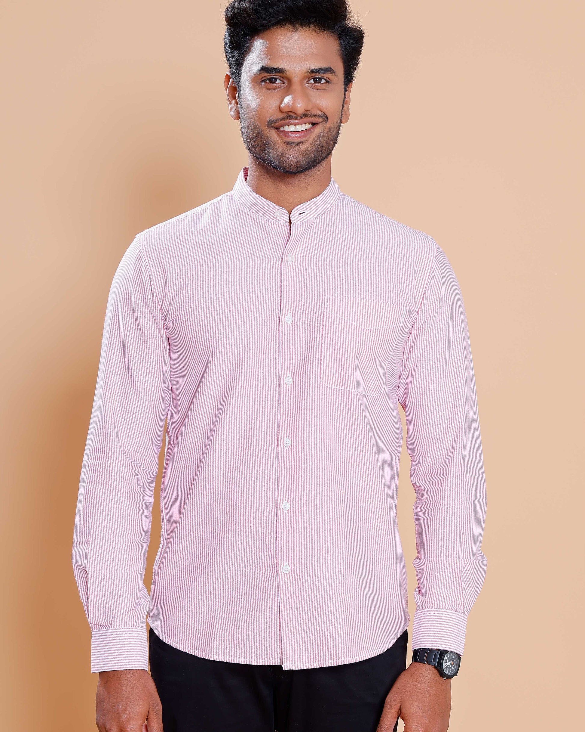 Nativebull Men Striped Full Sleeve Cotton Shirt - Pink
