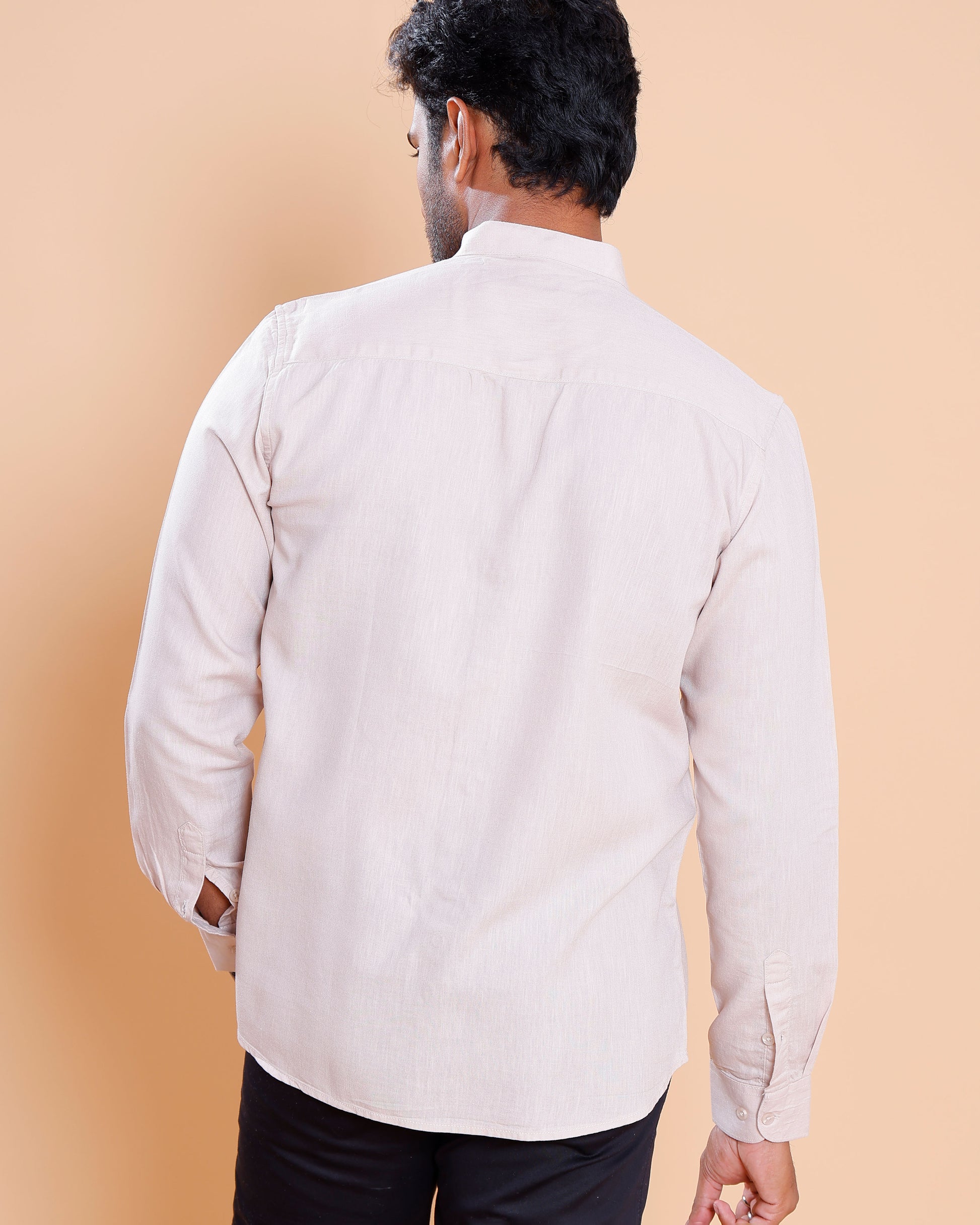 Nativebull Men Solid Full Sleeve Linen Blend Shirt - Peach