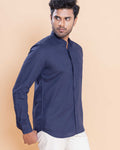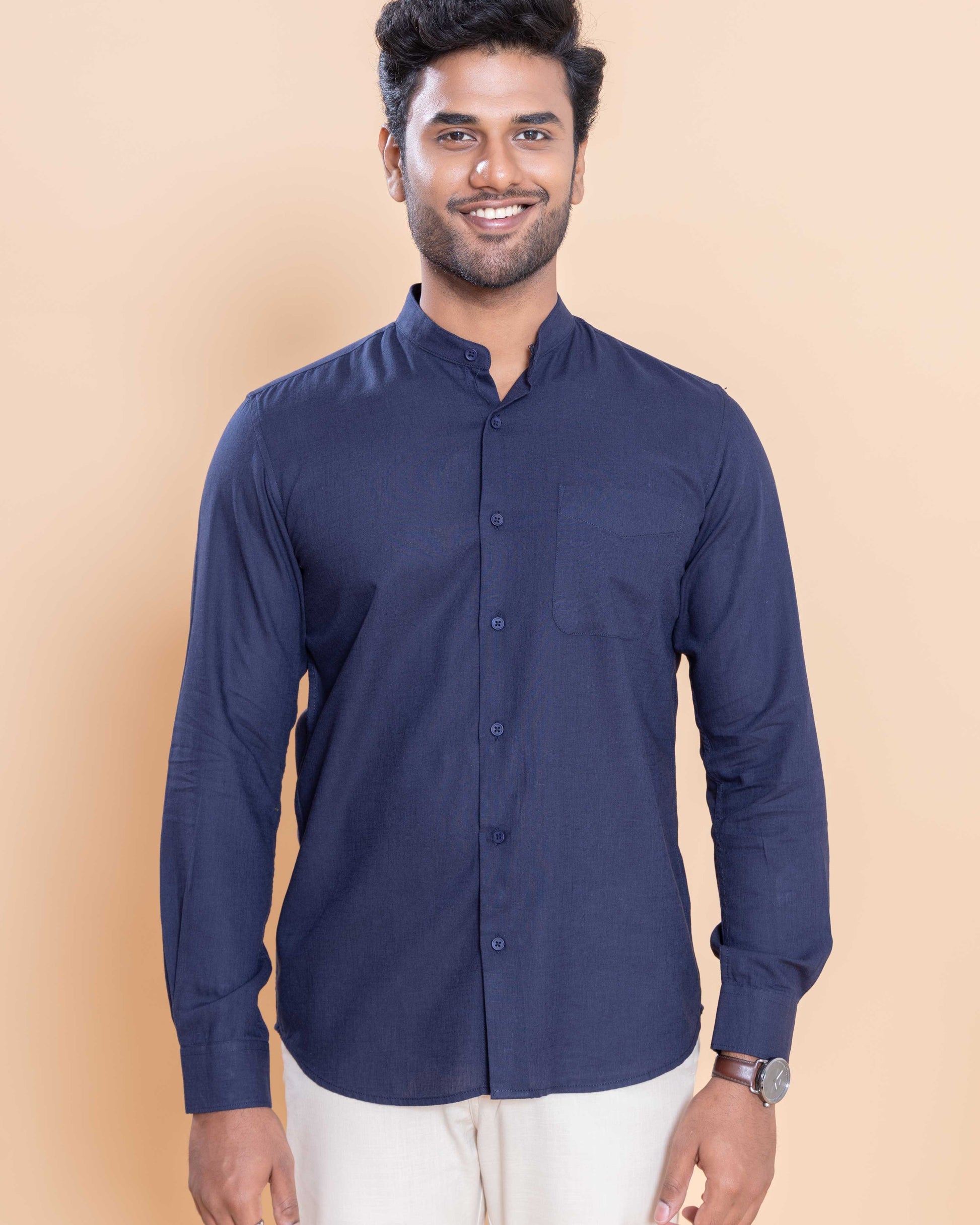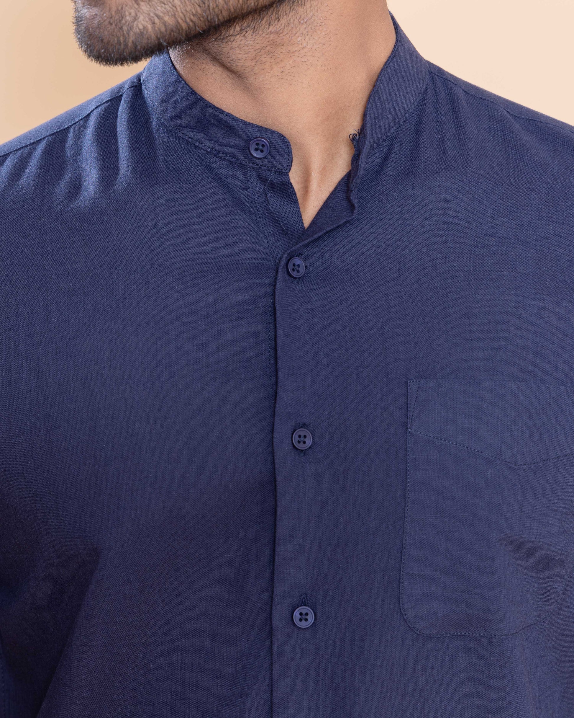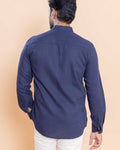 Nativebull Men Solid Full Sleeve Linen Blend Shirt - Navy Blue