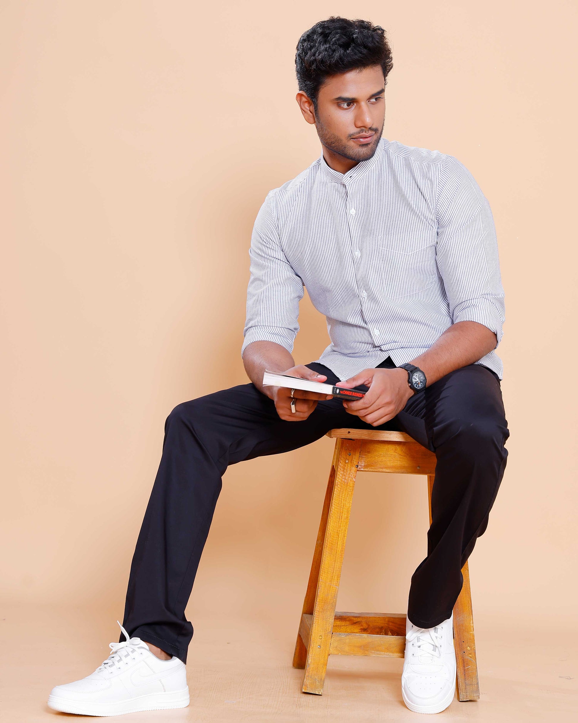 Nativebull Men Striped Full Sleeve Cotton Shirt - Blue