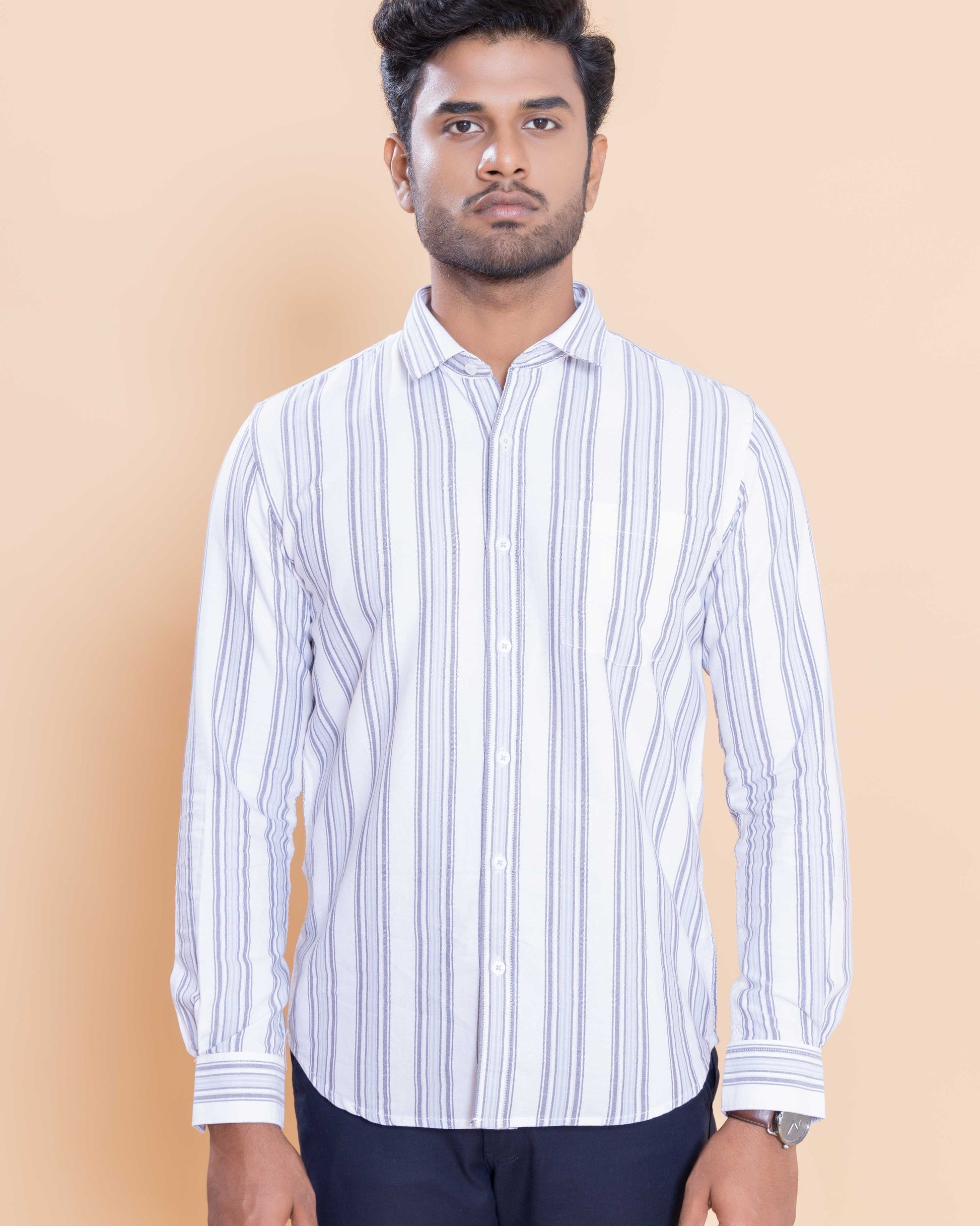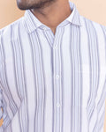 Nativebull Men Striped Full Sleeve Cotton Shirt - Blue