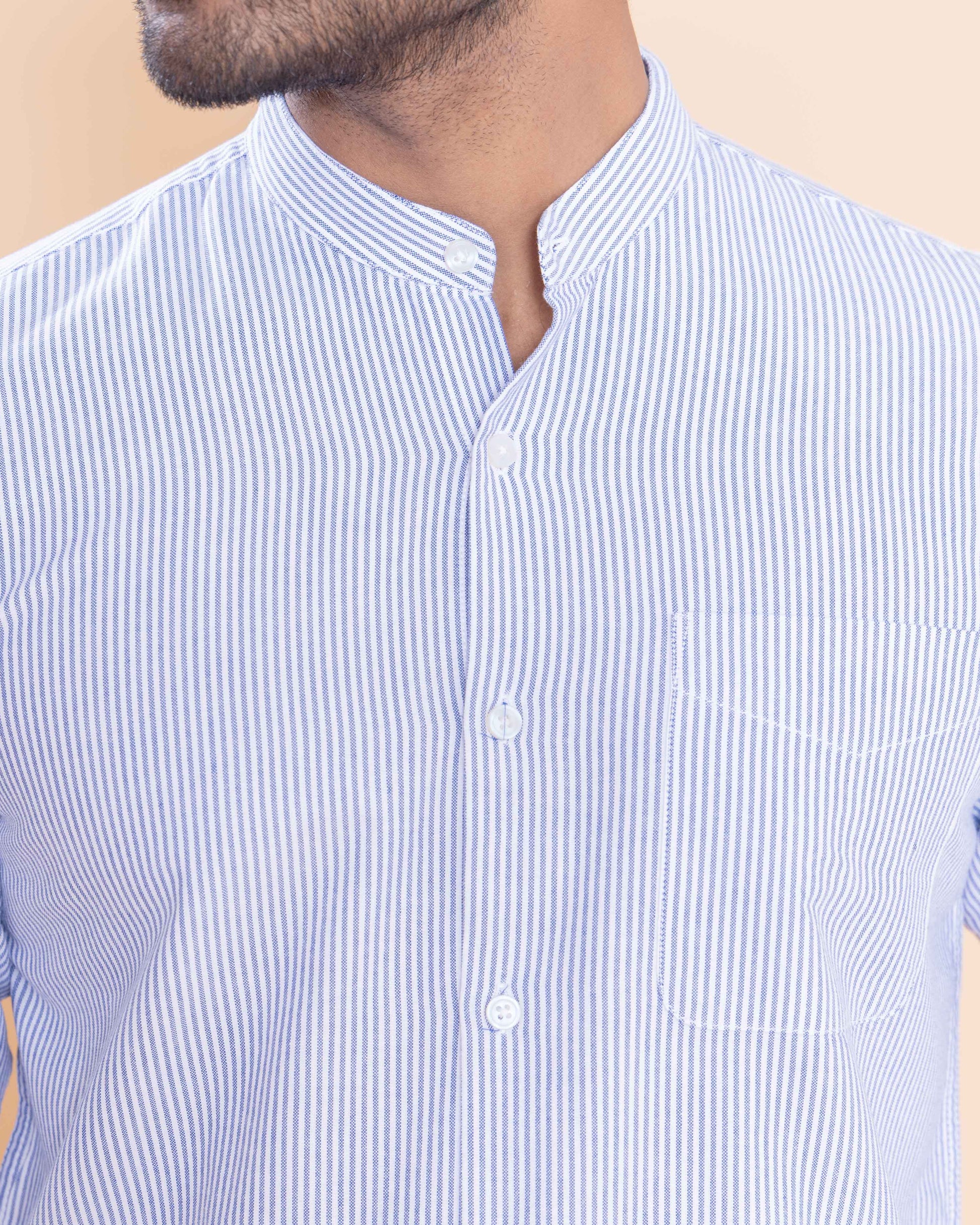 Nativebull Men Striped Full Sleeve Cotton Shirt - Blue
