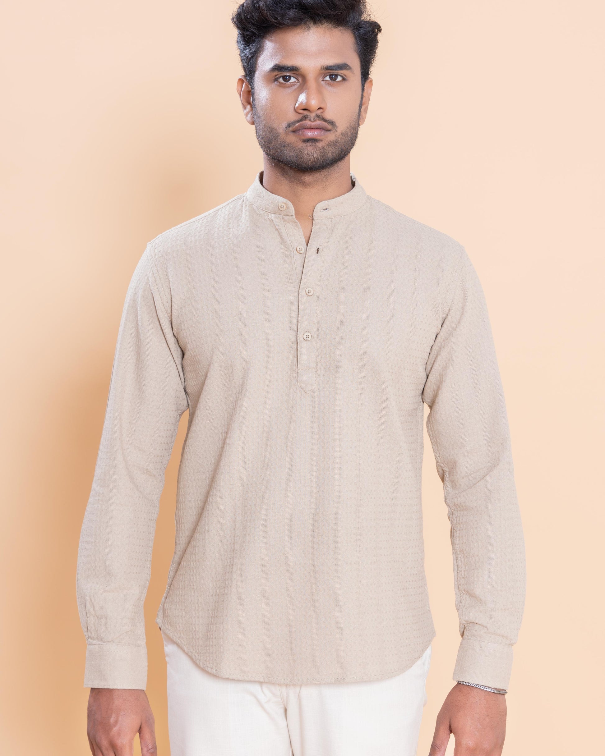 Nativebull Men Textured Full Sleeve Cotton Shirt - Beige