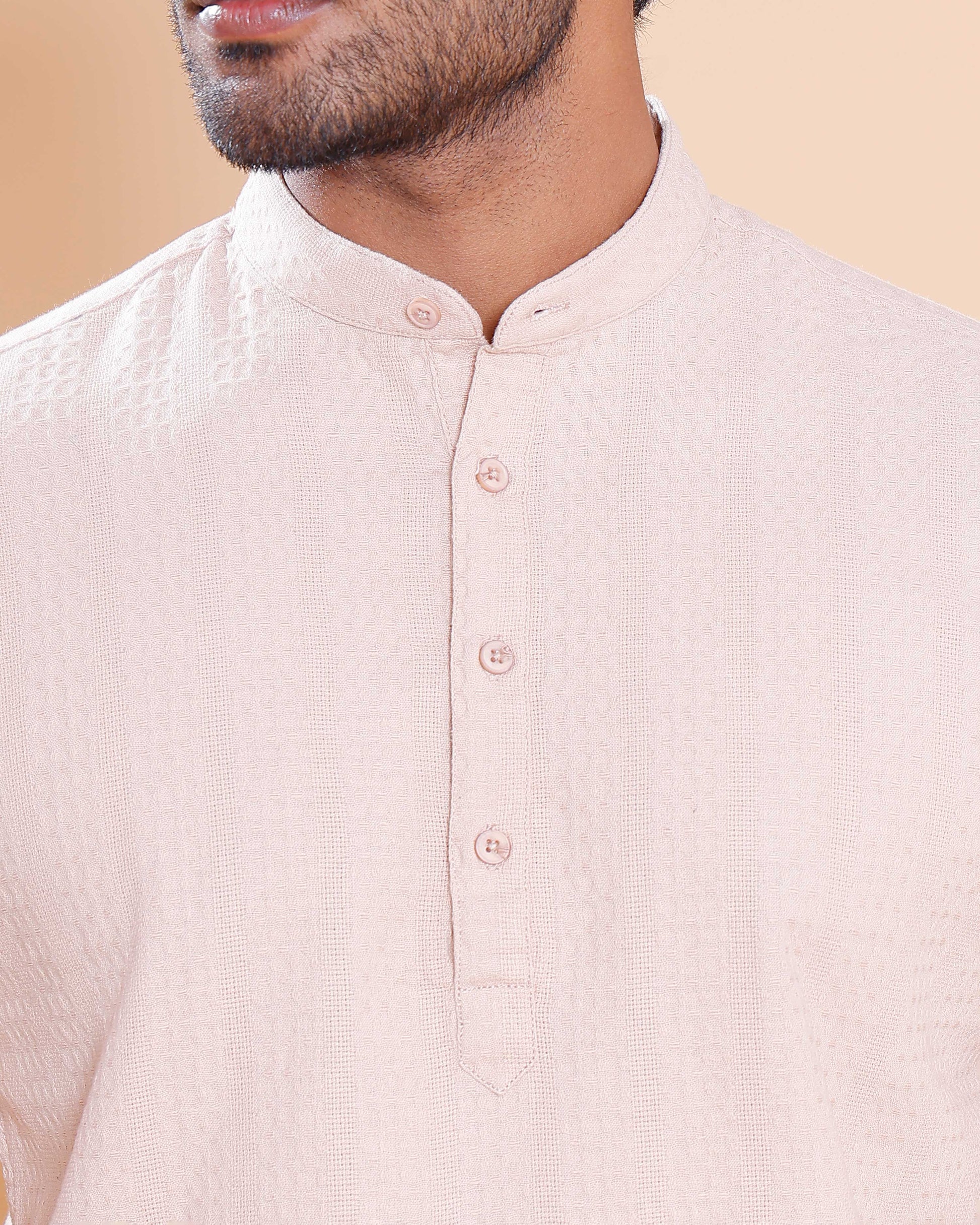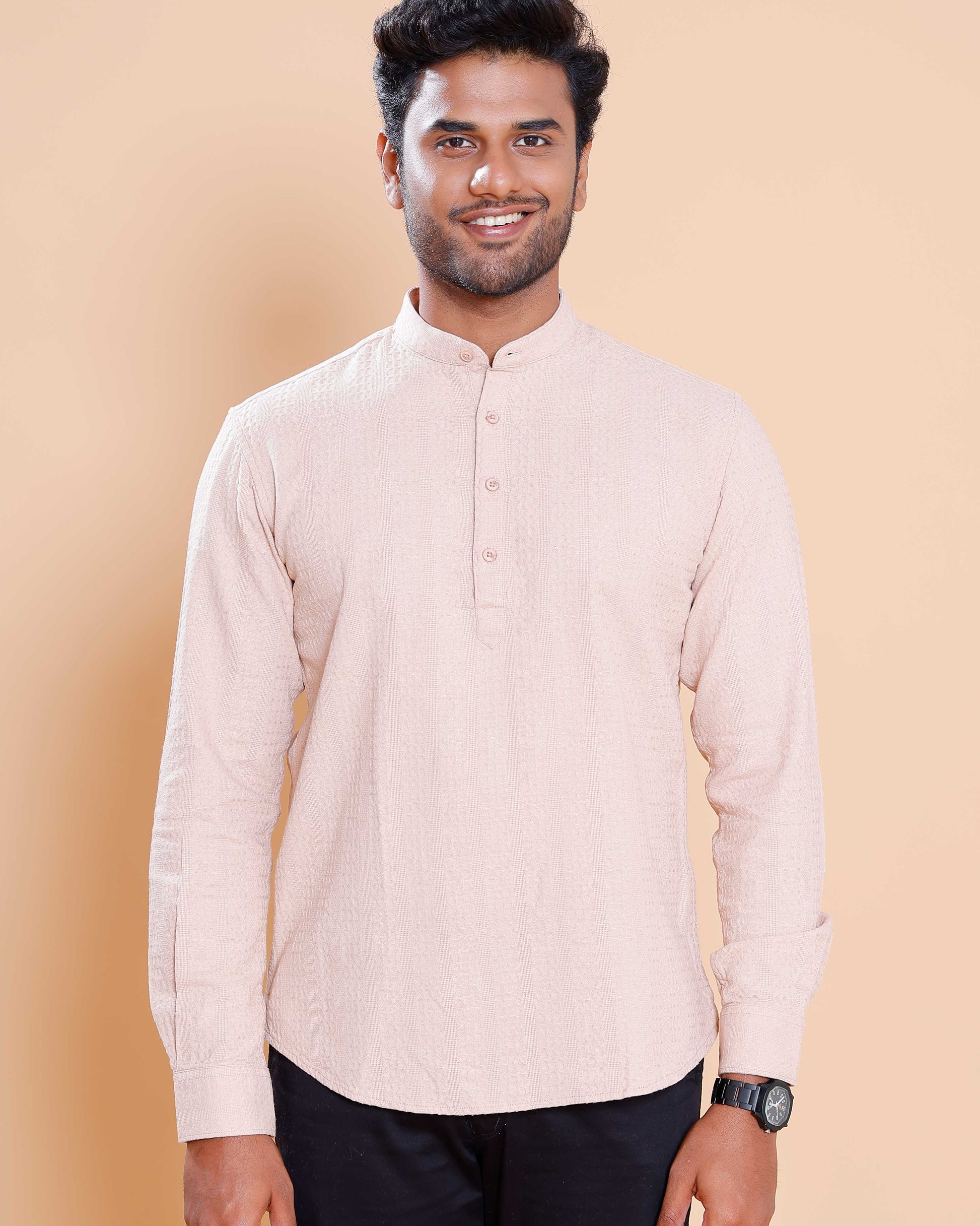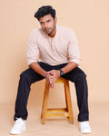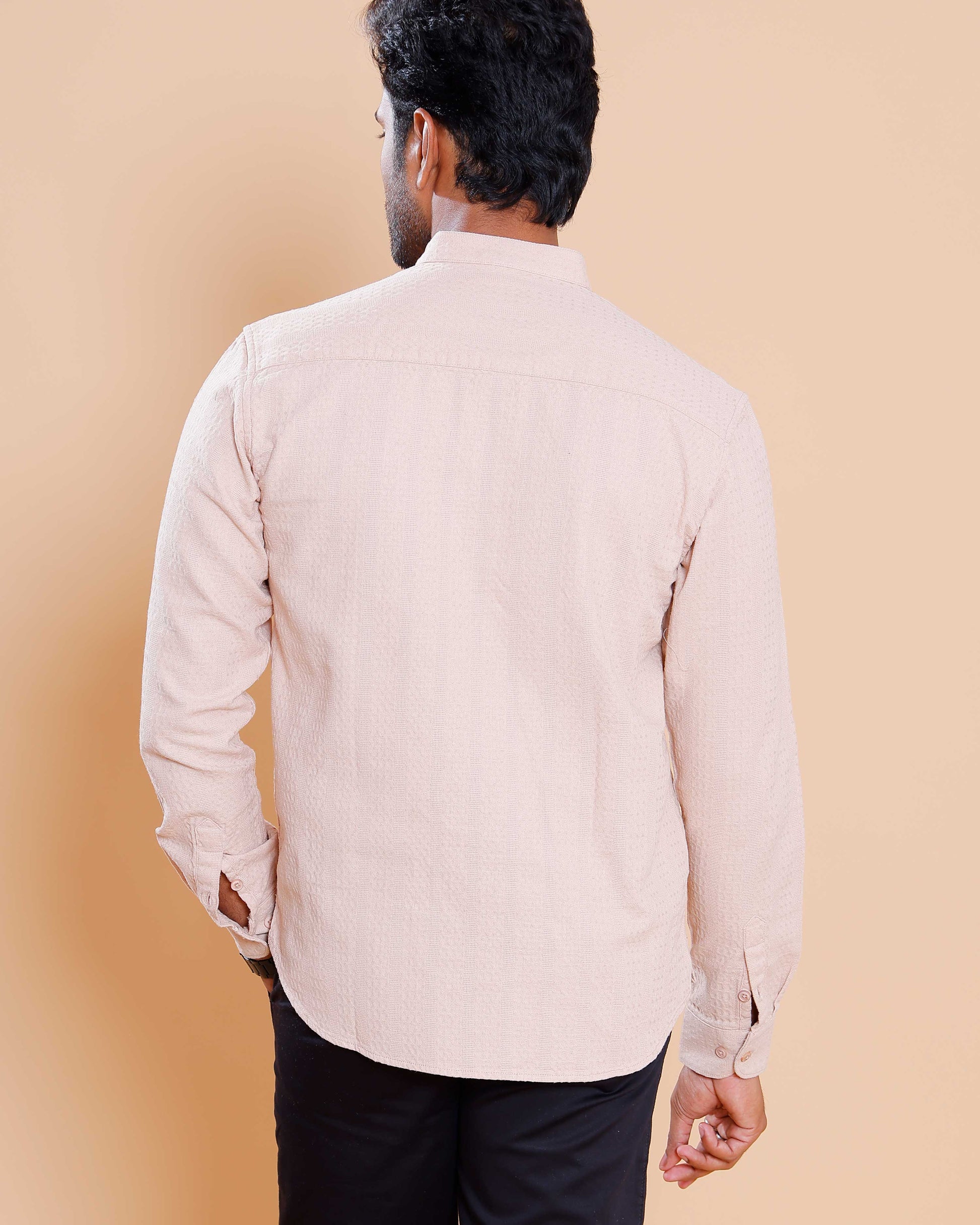 Nativebull Men Textured Full Sleeve Cotton Shirt - Peach