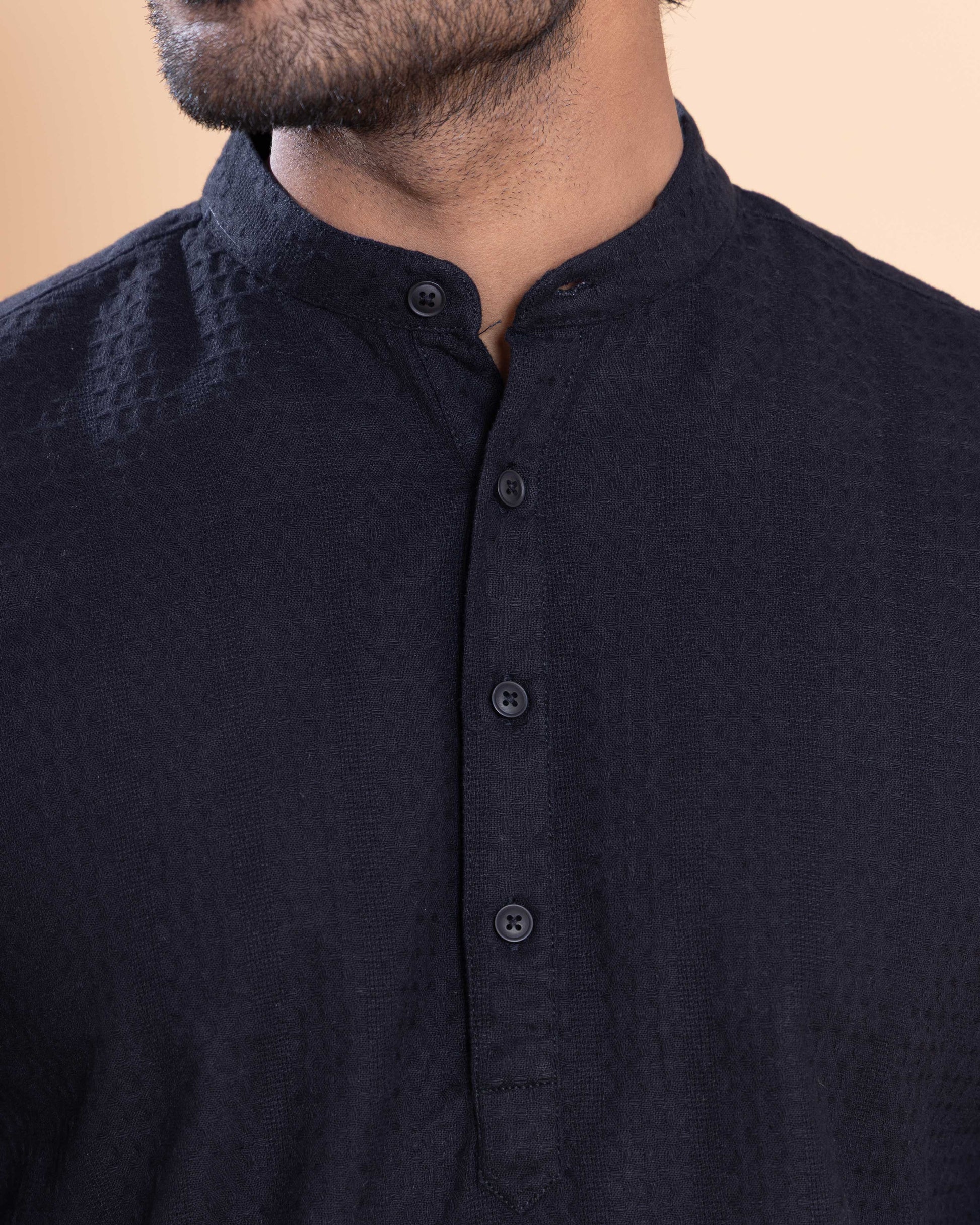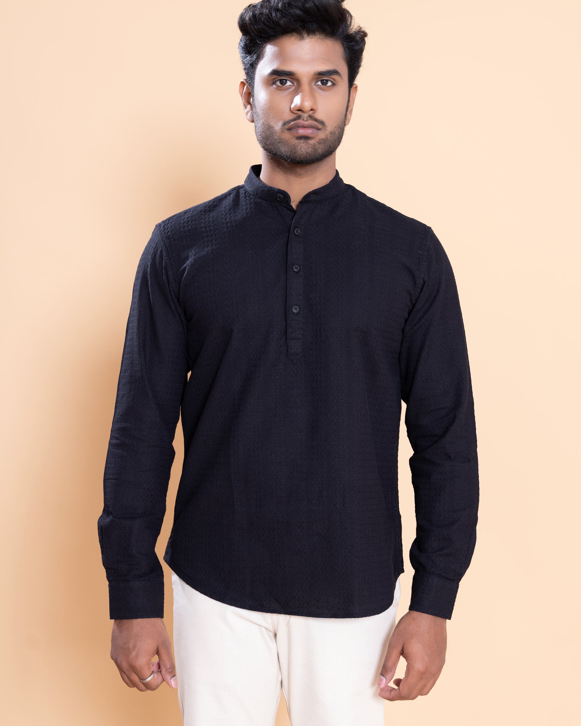 Nativebull Men Textured Full Sleeve Cotton Shirt - Black