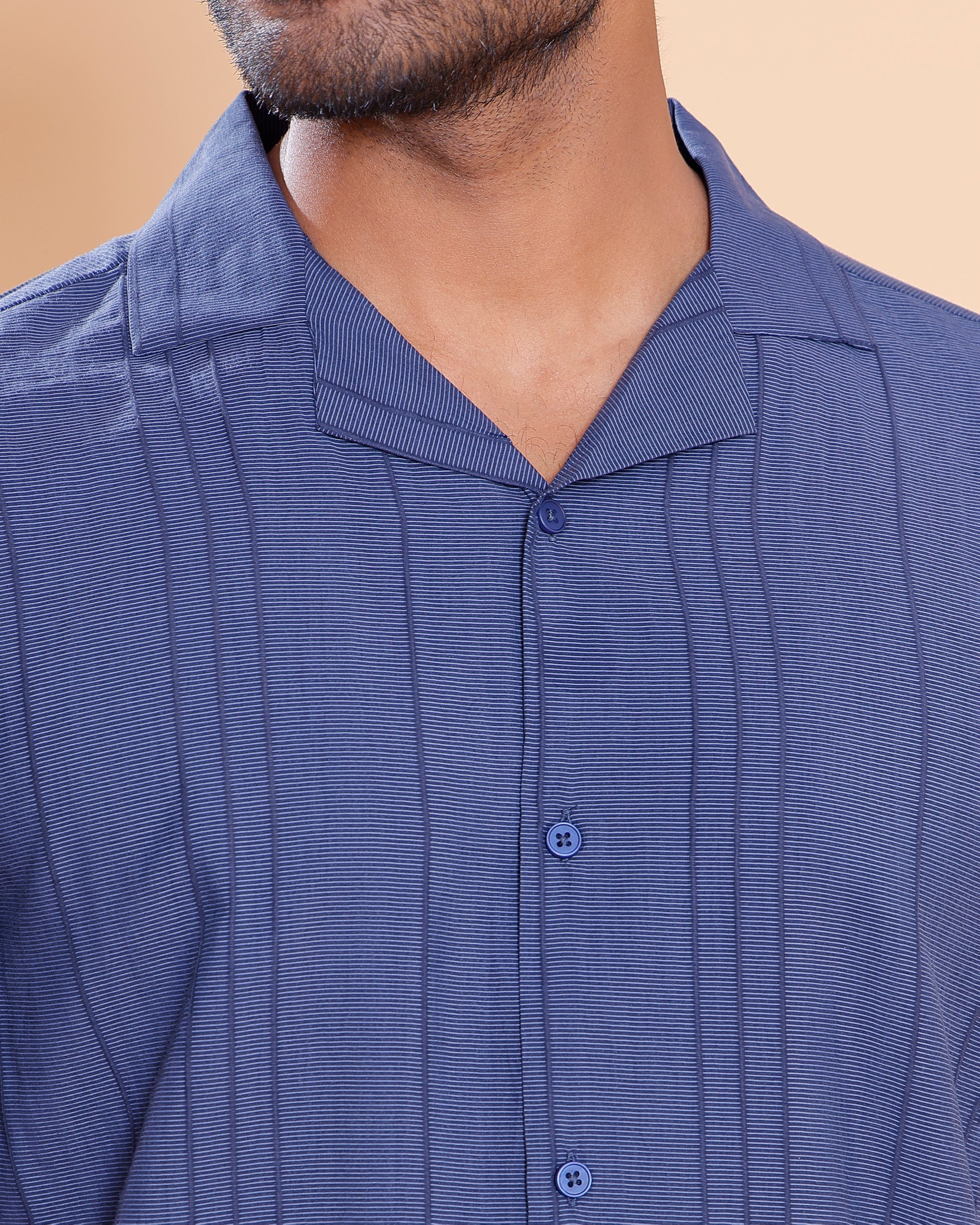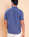 Nativebull Men Textured Half Sleeve Cotton Blend Shirt - Blue