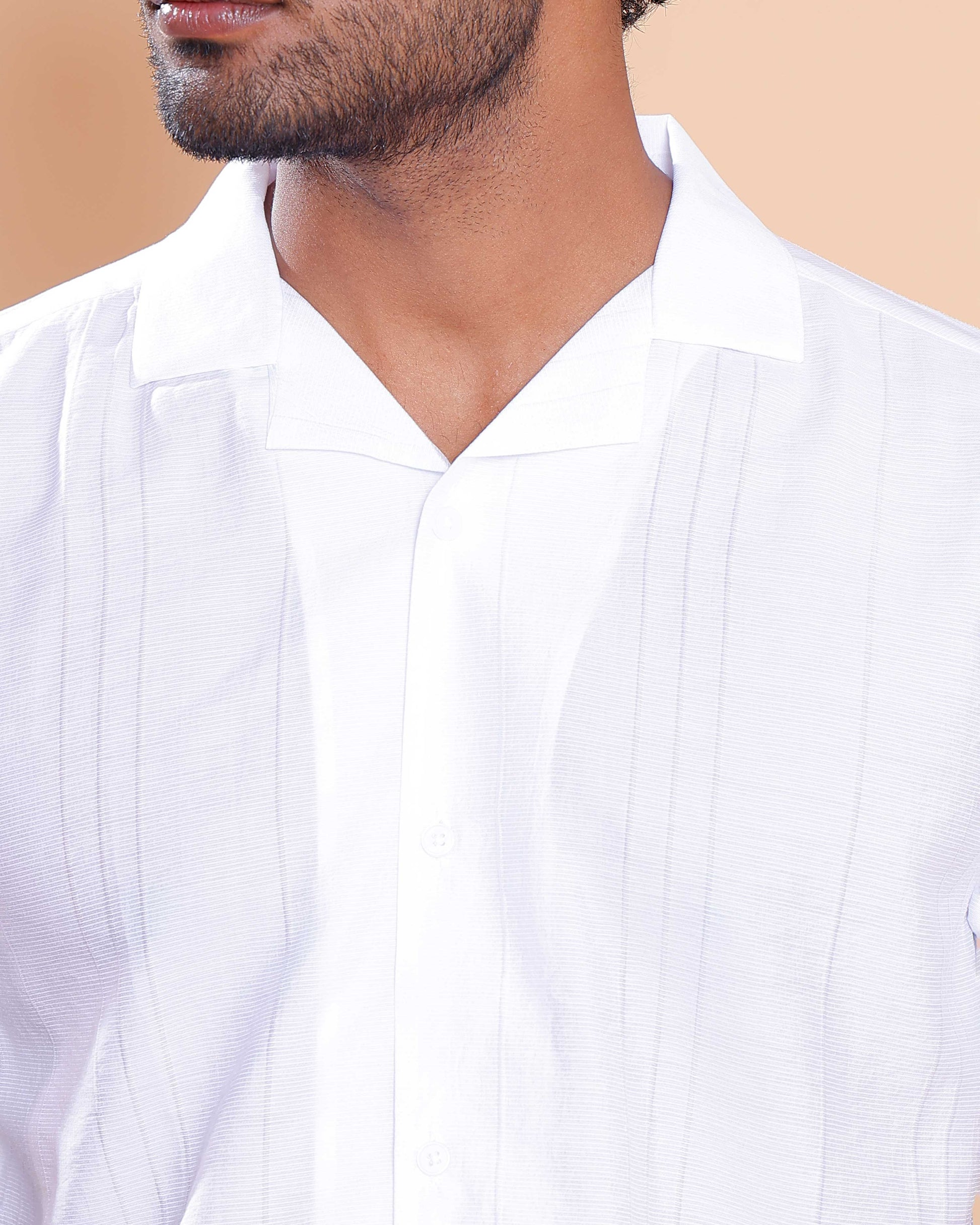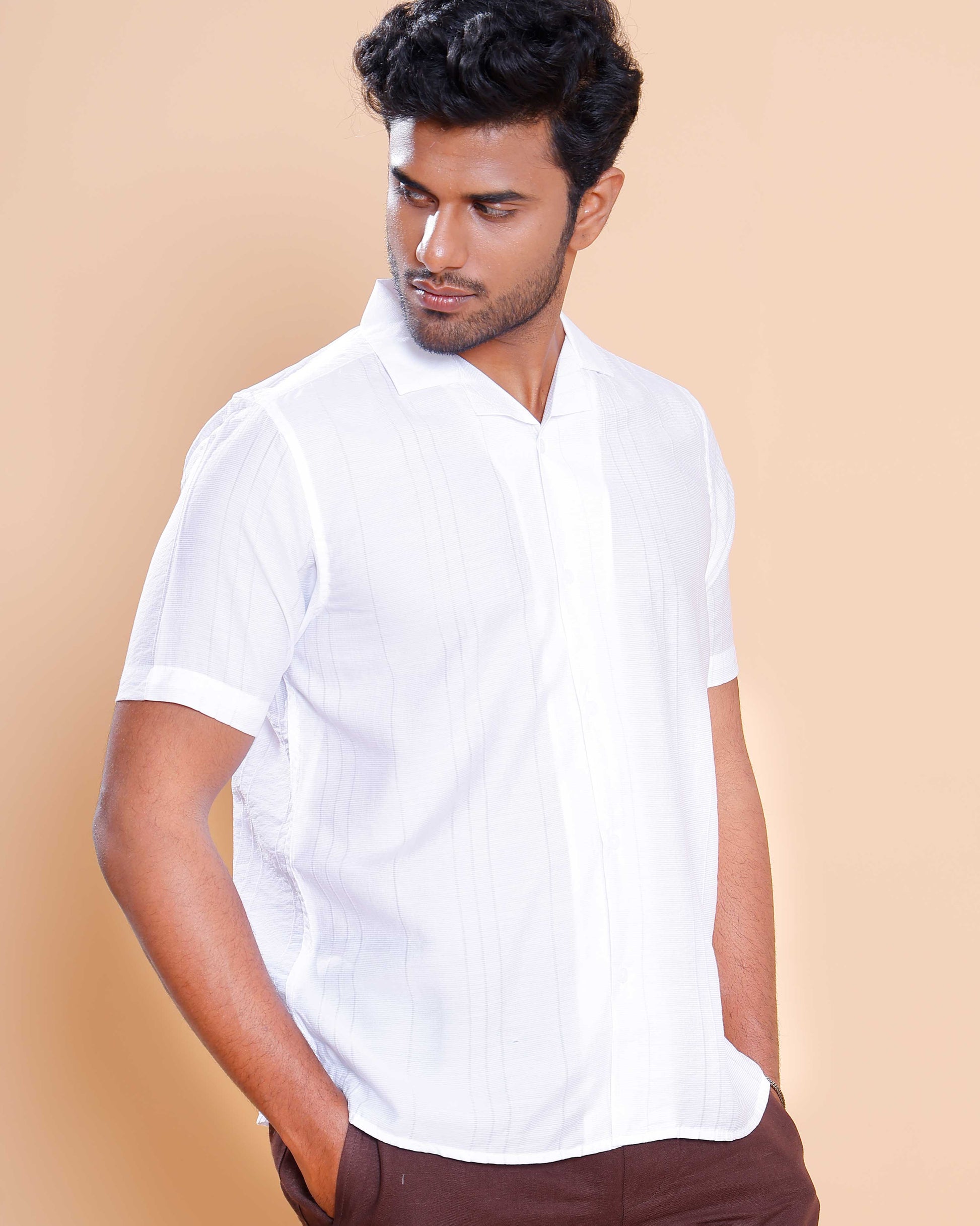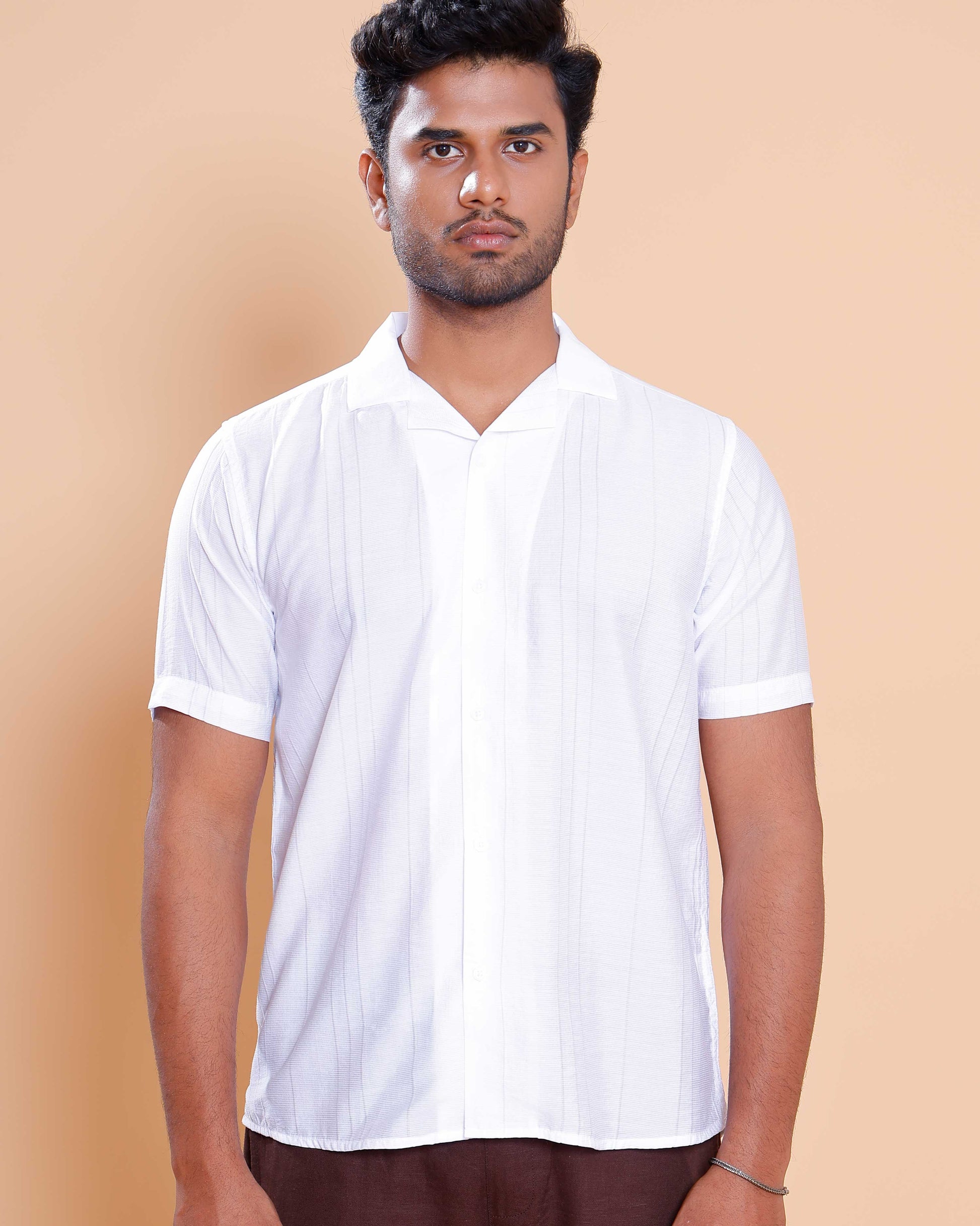Nativebull Men Textured Half Sleeve Cotton Blend Shirt - White