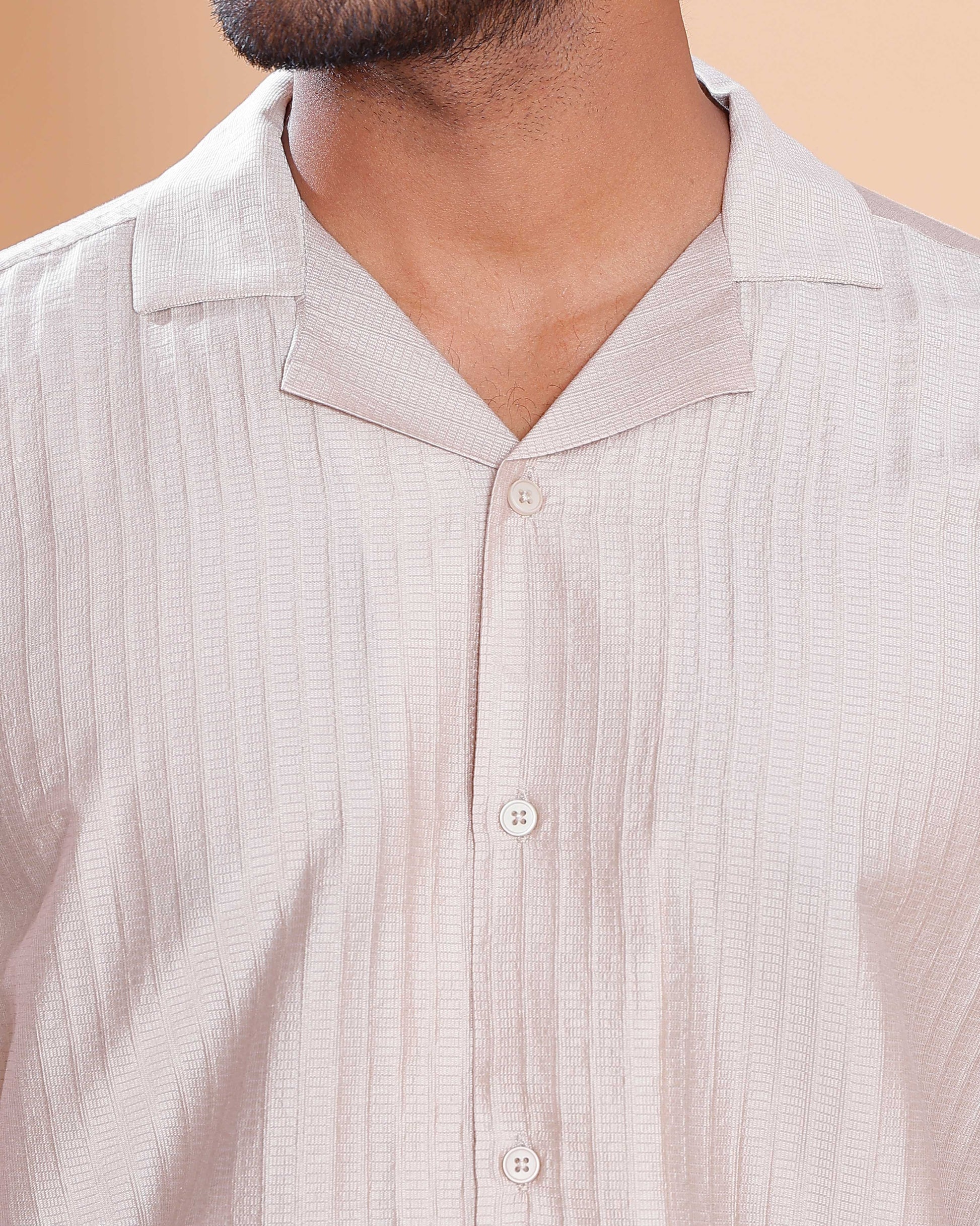 Nativebull Men Textured Half Sleeve Cotton Blend Shirt - Beige