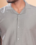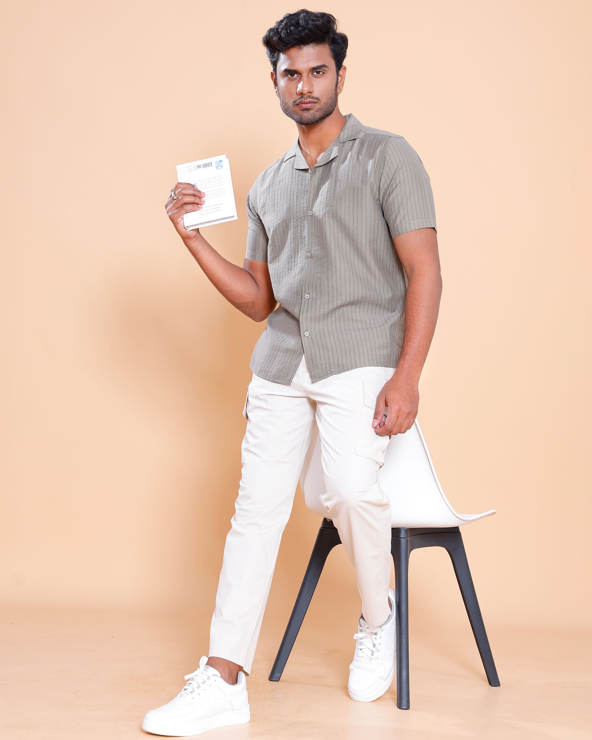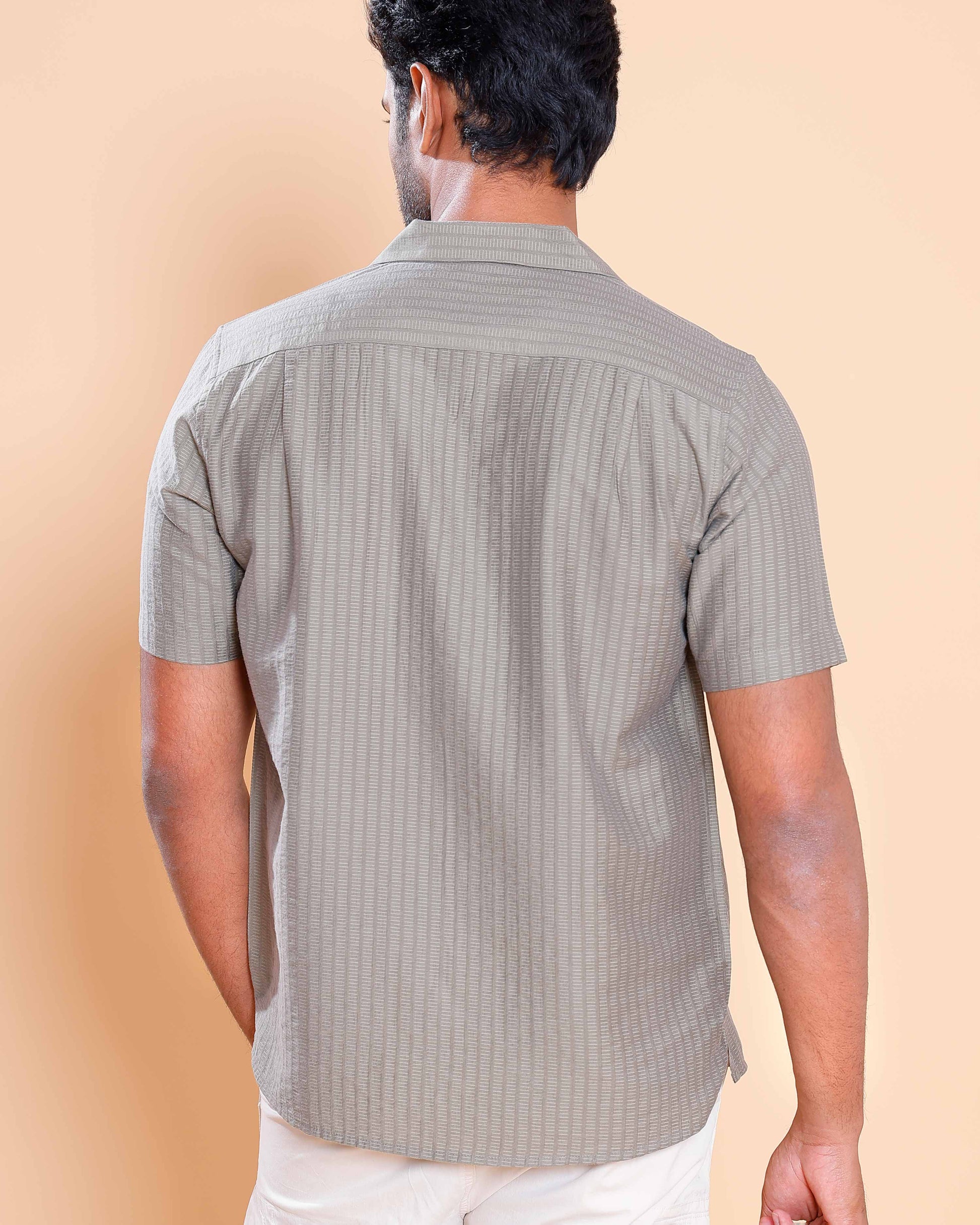 Nativebull Men Textured Half Sleeve Cotton Blend Shirt - Olive Green
