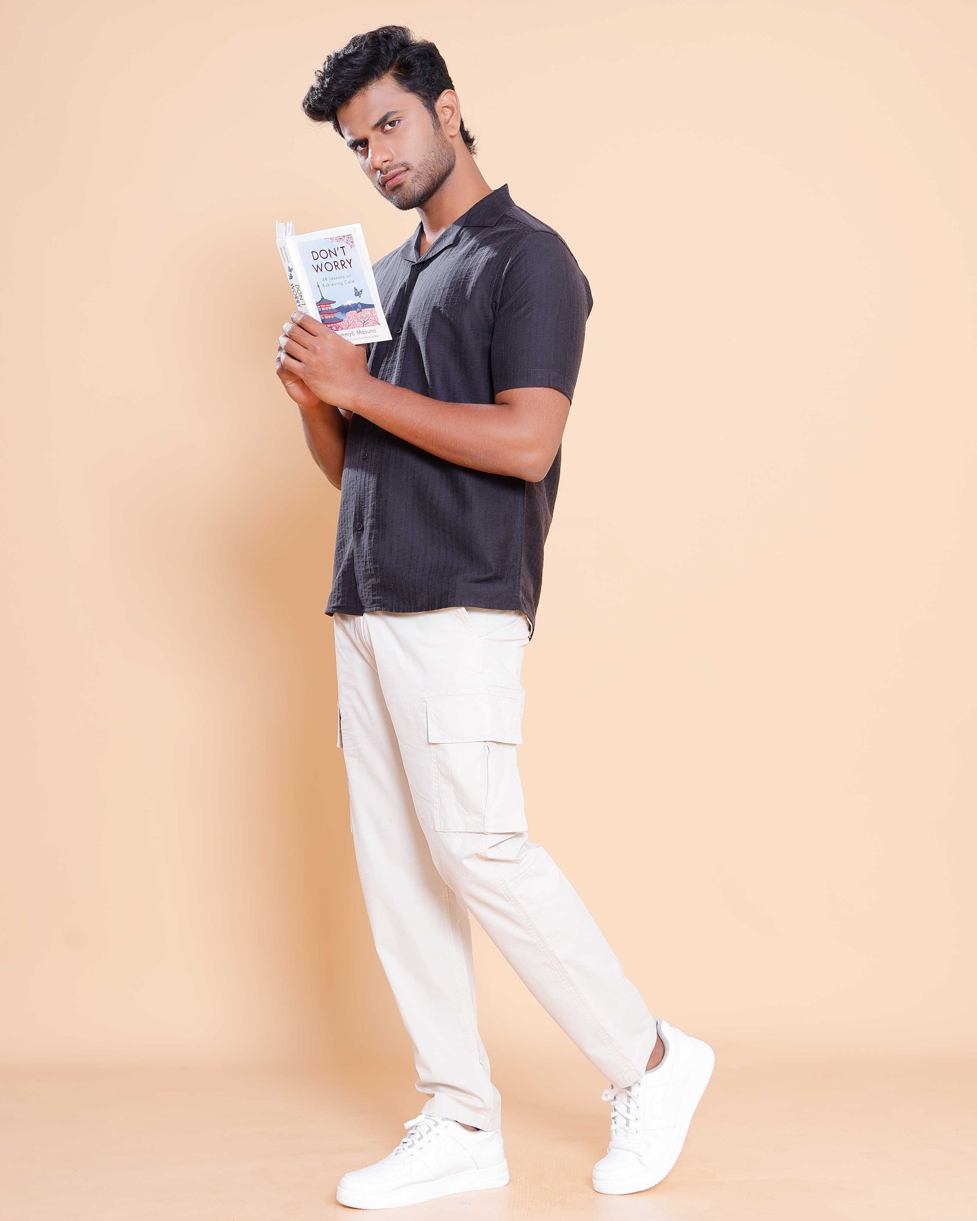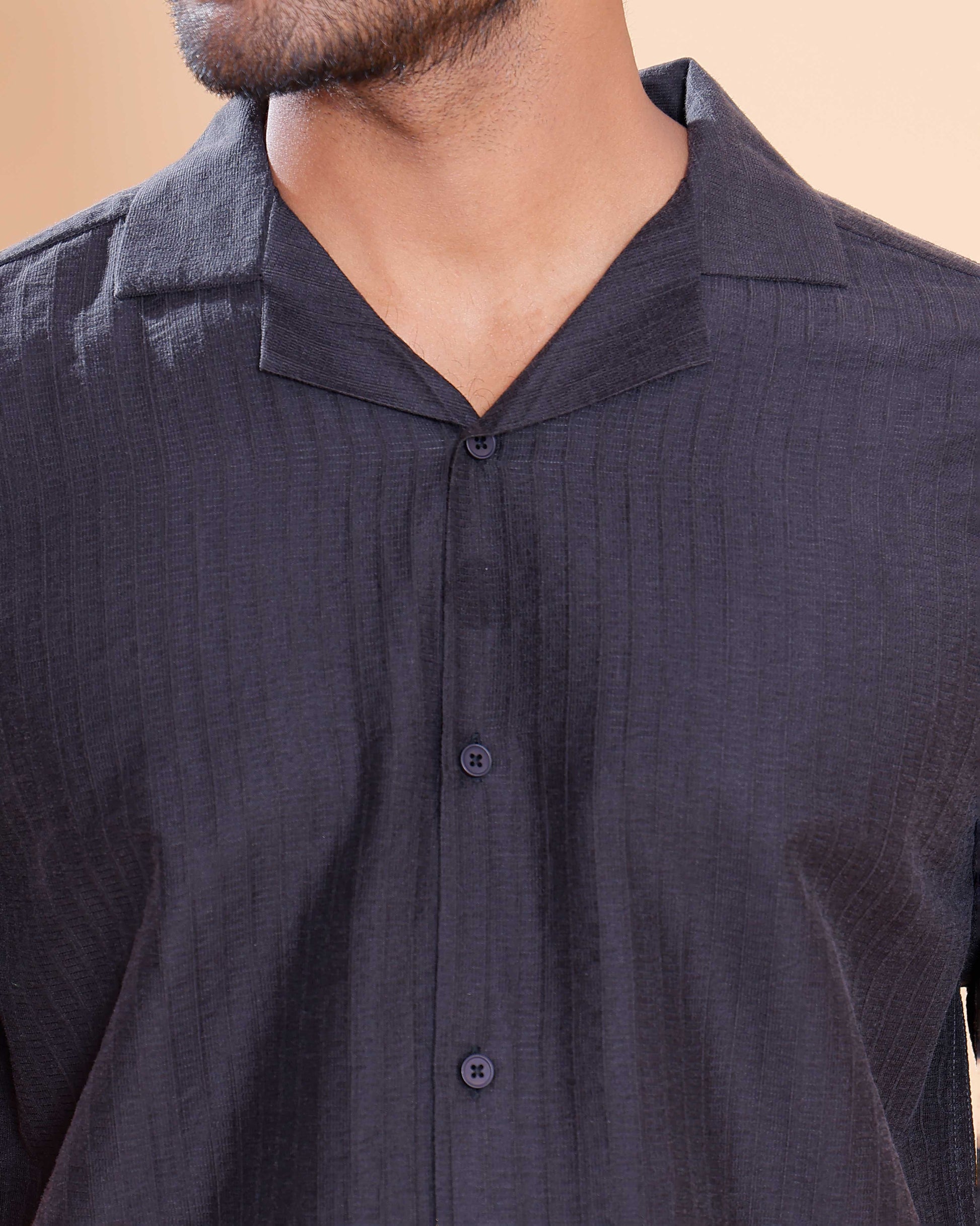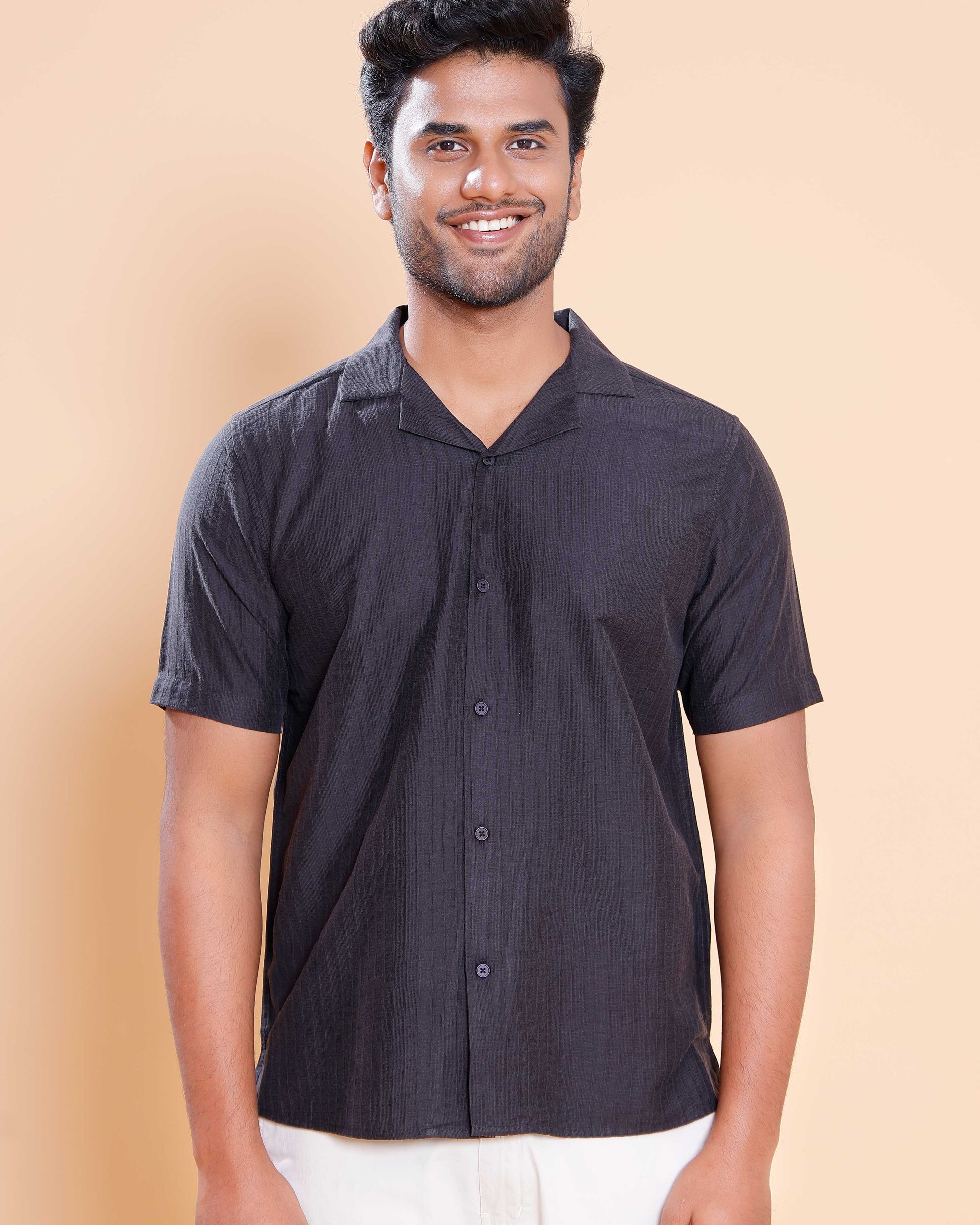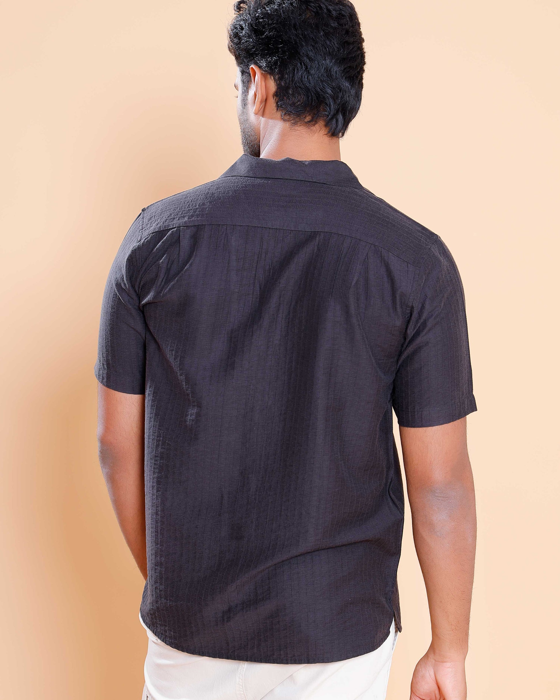 Nativebull Men Textured Half Sleeve Cotton Blend Shirt - Black