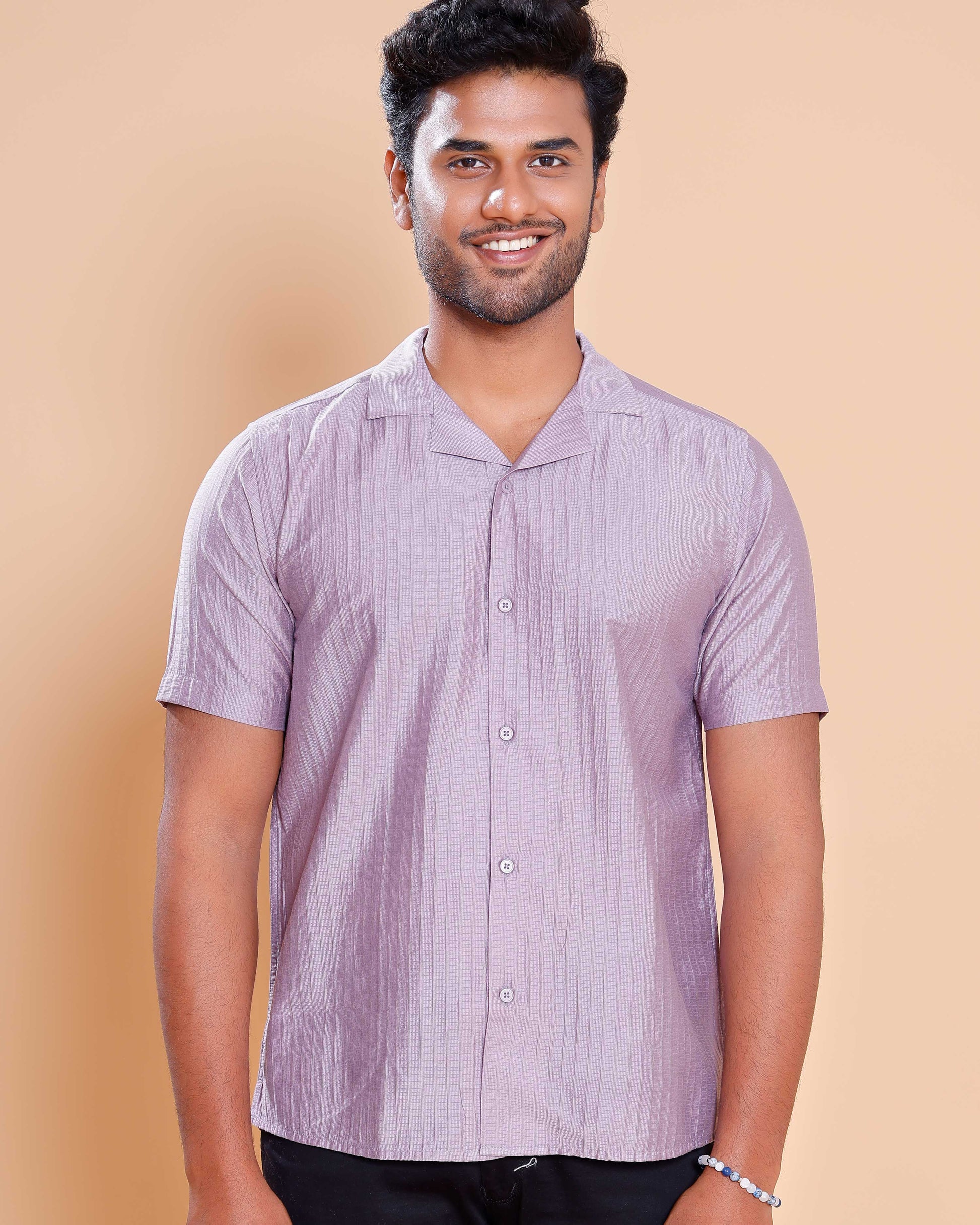 Nativebull Men Textured Half Sleeve Cotton Blend Shirt - Lavender