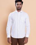 Nativebull Men Striped Full Sleeve Cotton Shirt - White