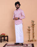 Men's Full Sleeve Shirt and Traditional Dhoti Set with Woven Border - Pink
