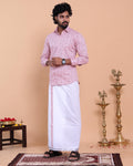 Men's Full Sleeve Shirt and Traditional Dhoti Set with Woven Border - Pink