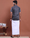 Men's Printed Half Sleeve Shirt and Traditional Dhoti Set with Designer Border - Navy Blue