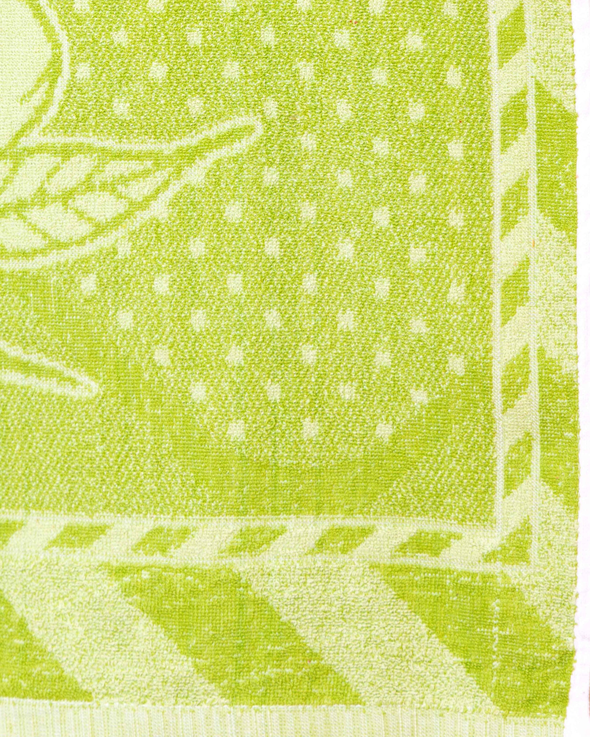 - This vibrant lime green towel a subtle dotted texture and a decorative striped border.