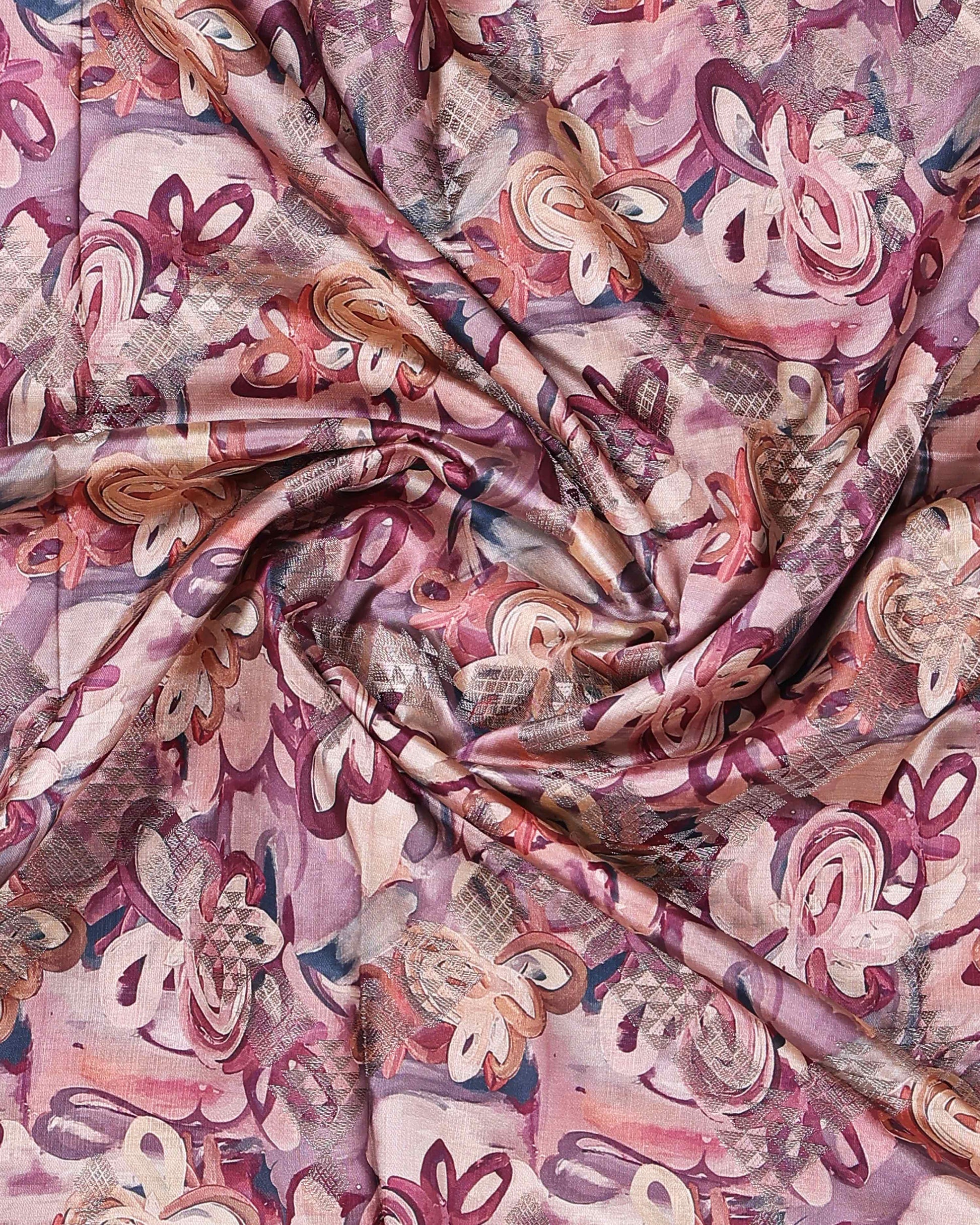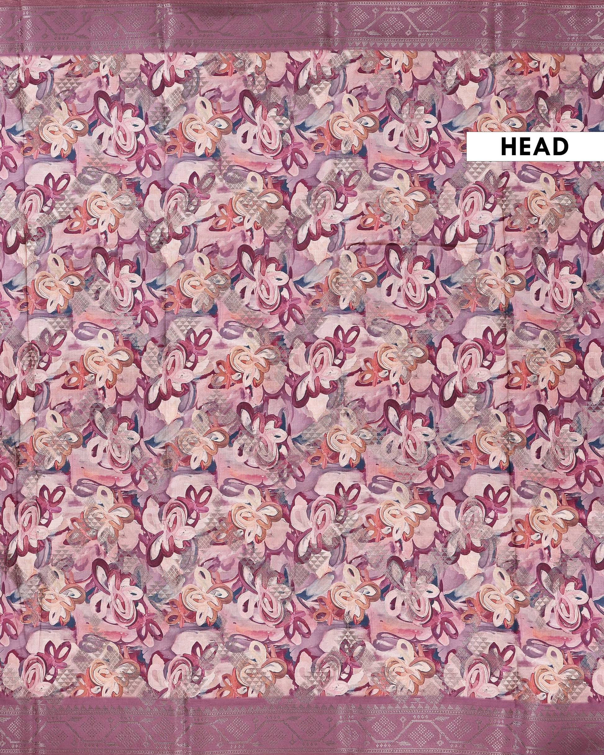 Floral Pattern Dola Silk Saree With Woven Border - Multi