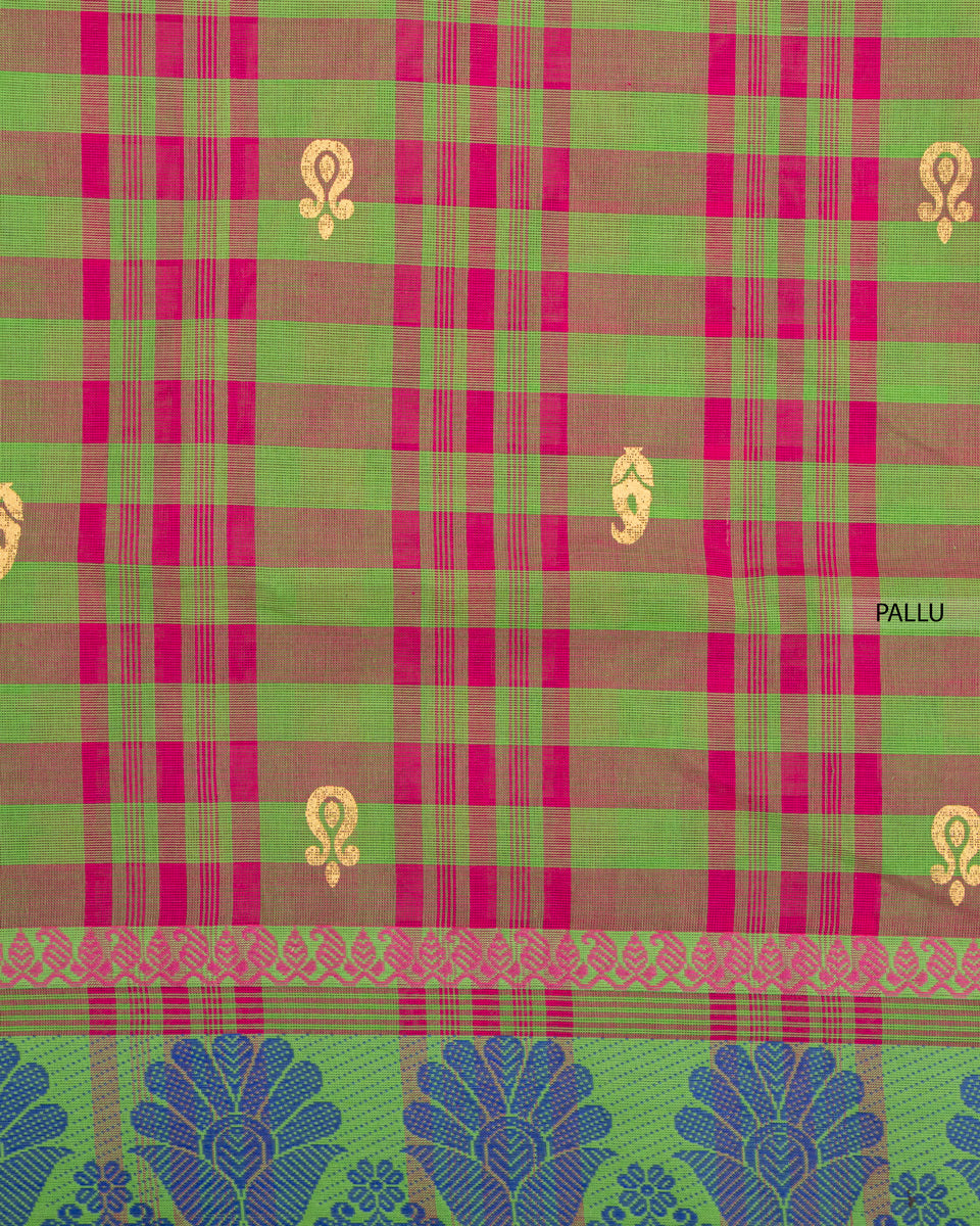 Handloom Cotton Saree with Checked Weave and Zari Border - Multi
