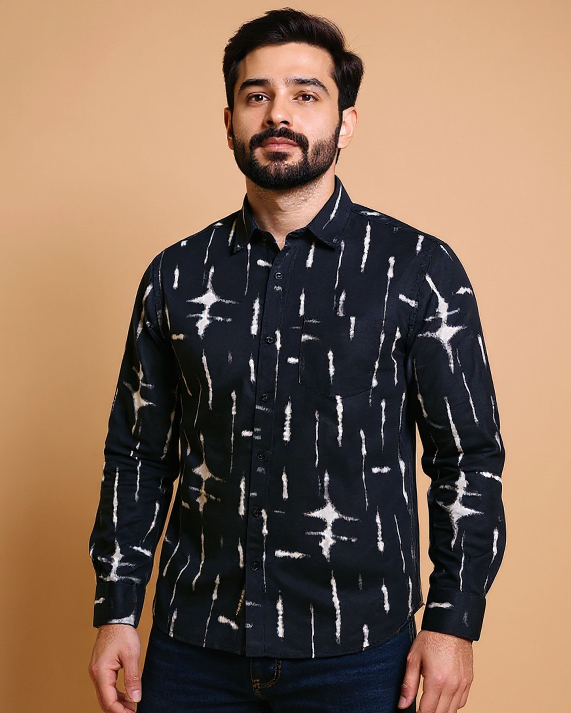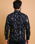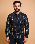 Men's Rocx Casual Shirt with Abstract Print and Spread Collar - Black