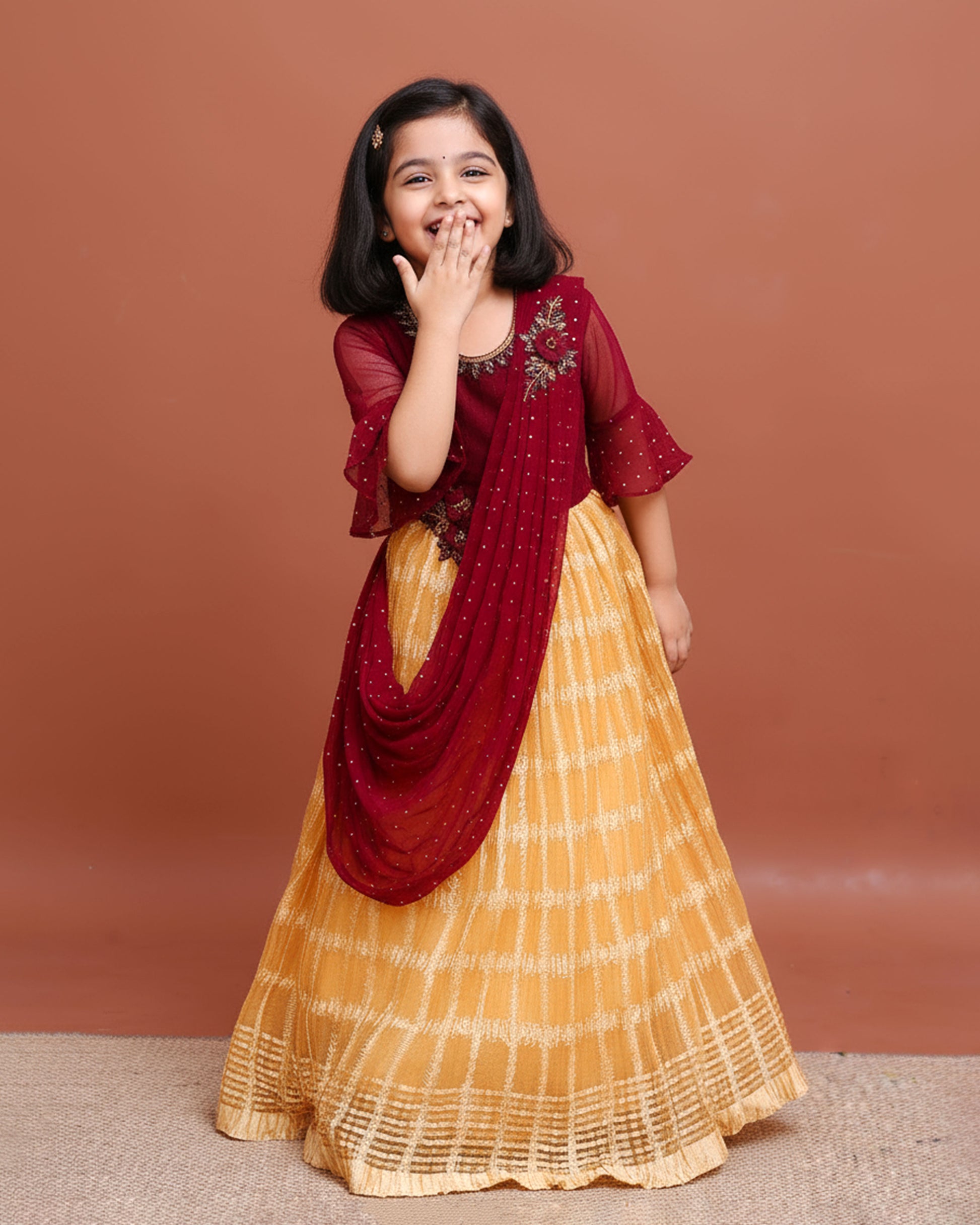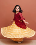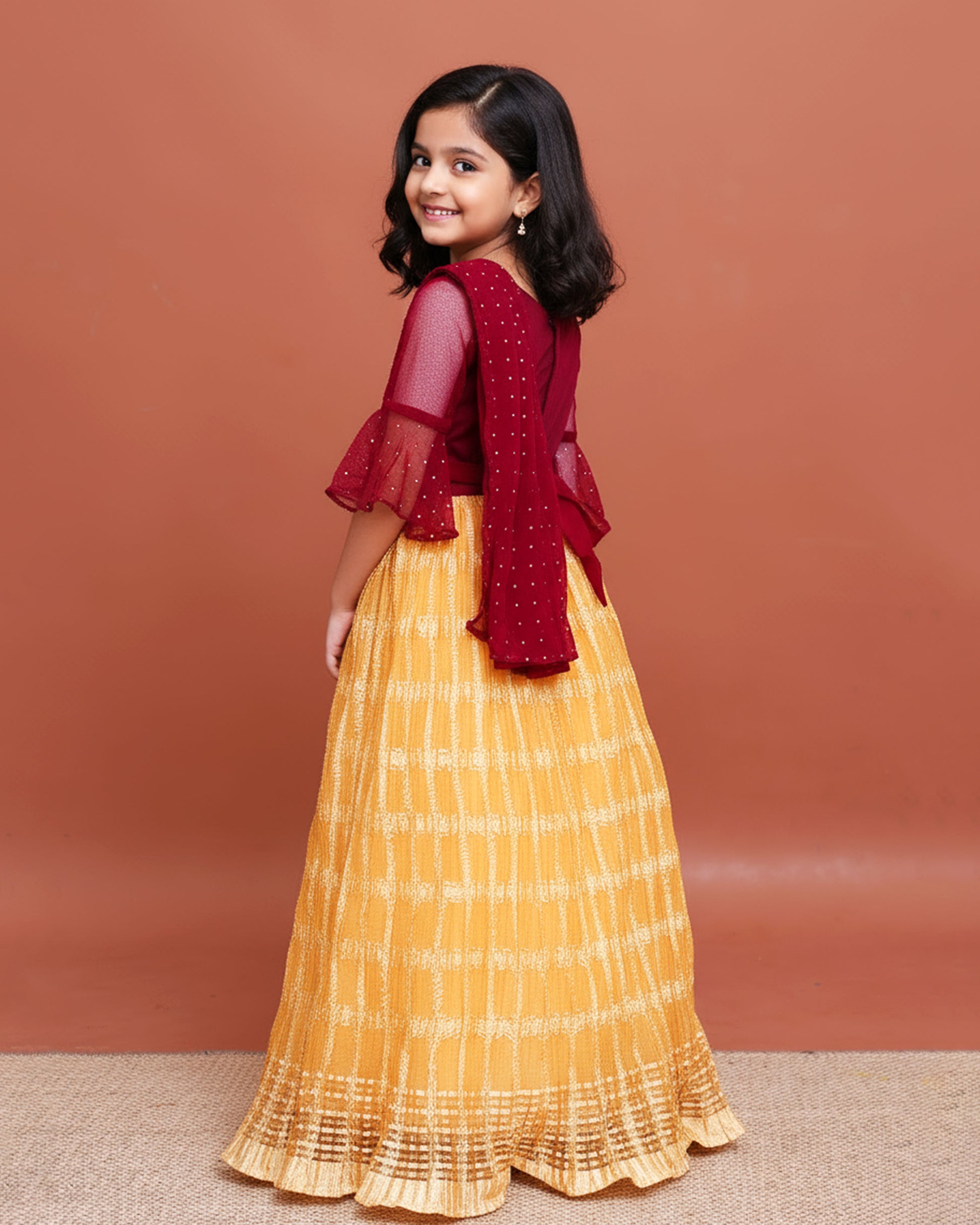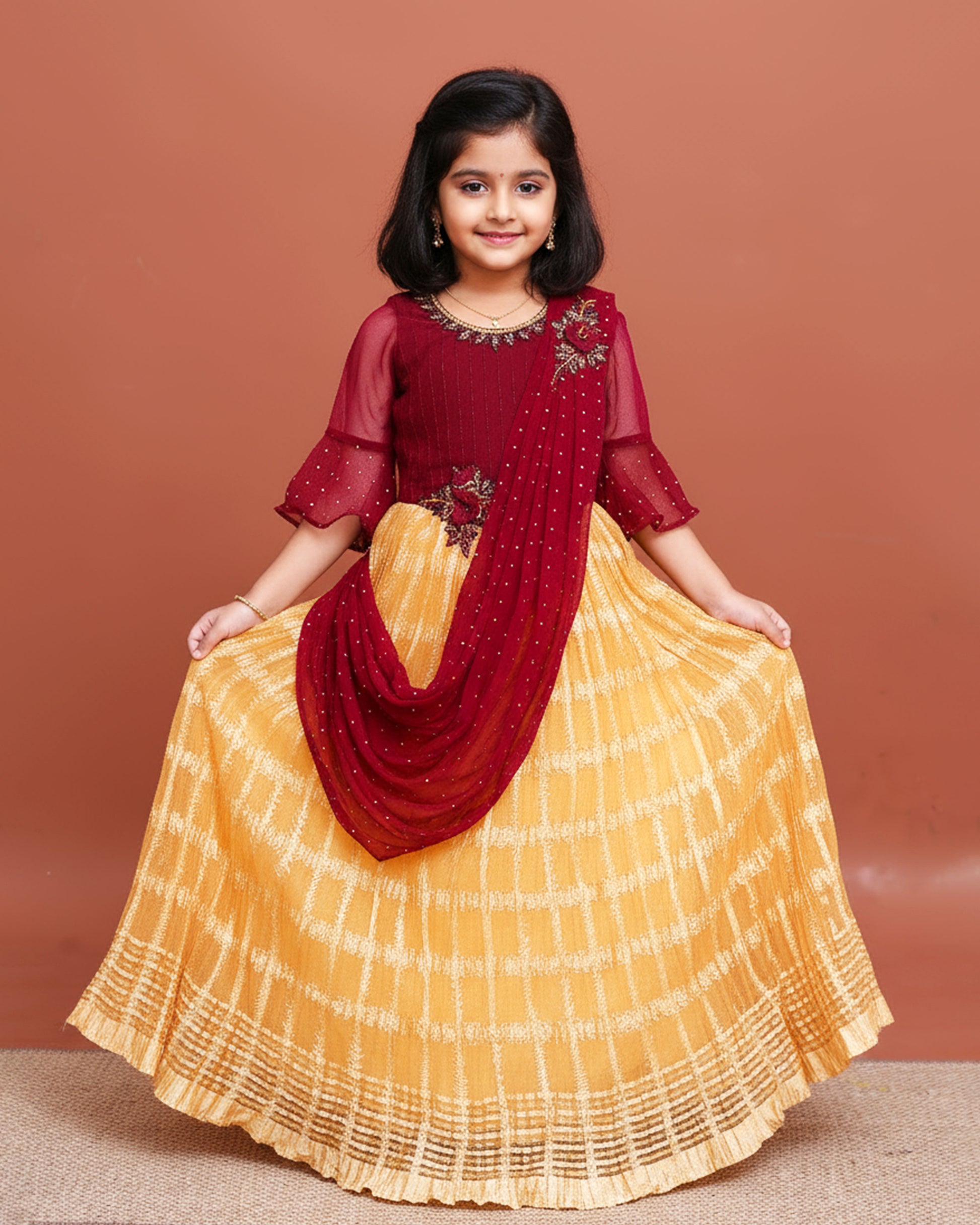 Girls Ethnic Party Wear Frock with Pleated Skirt and Embellished - Maroon