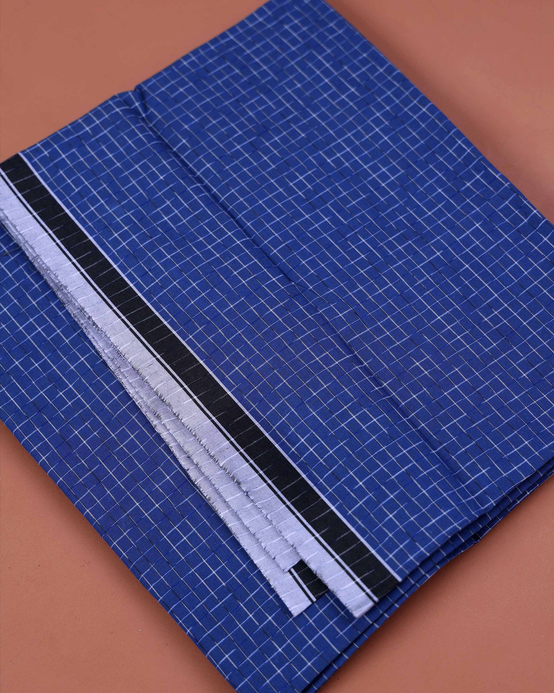 Nandu Brand Men's Premium Cotton Checked 2.20 Meter Stitched Lungi - Blue