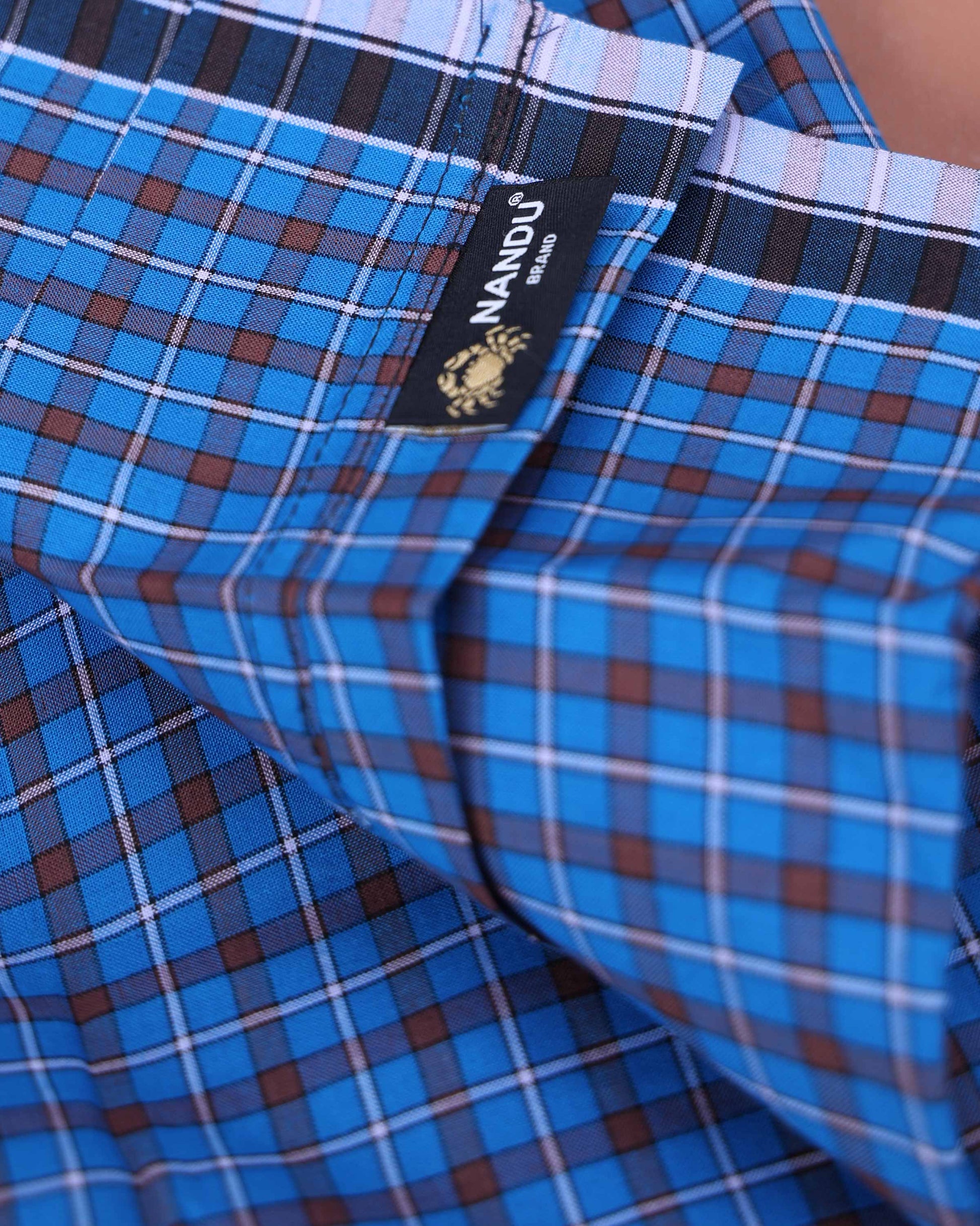 - Experience traditional comfort with this men's Nandu Brand Blue Checked cotton lungi perfect for casual wear.