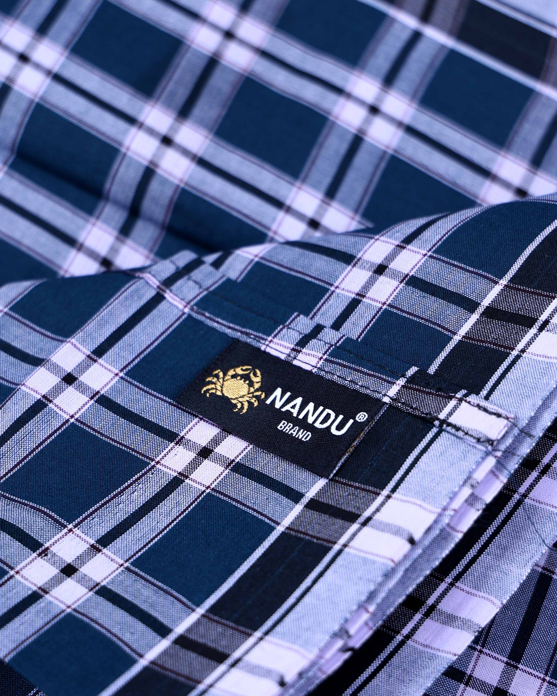 - Experience traditional comfort with this men's Nandu Brand Teal Checked cotton lungi perfect for casual wear.