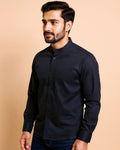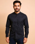 Native Bull Men's Solid Mandarin Collar Casual Shirt and Full Sleeves - Black