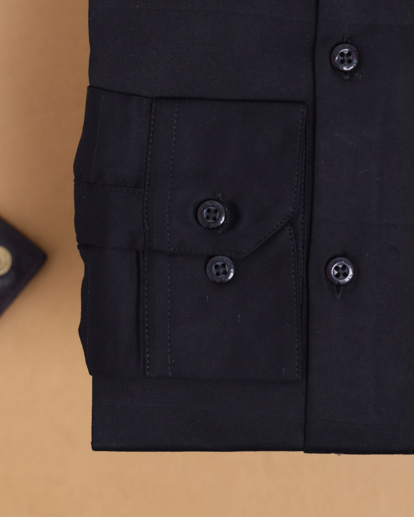 Men's Nativebull Solid Slim Fit Casual Shirt with Spread Collar and Full Sleeves -Black