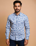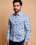 Nativebull Men's Leaf Print Slim Fit Casual Shirt with Spread Collar and Full Sleeves - Blue