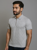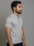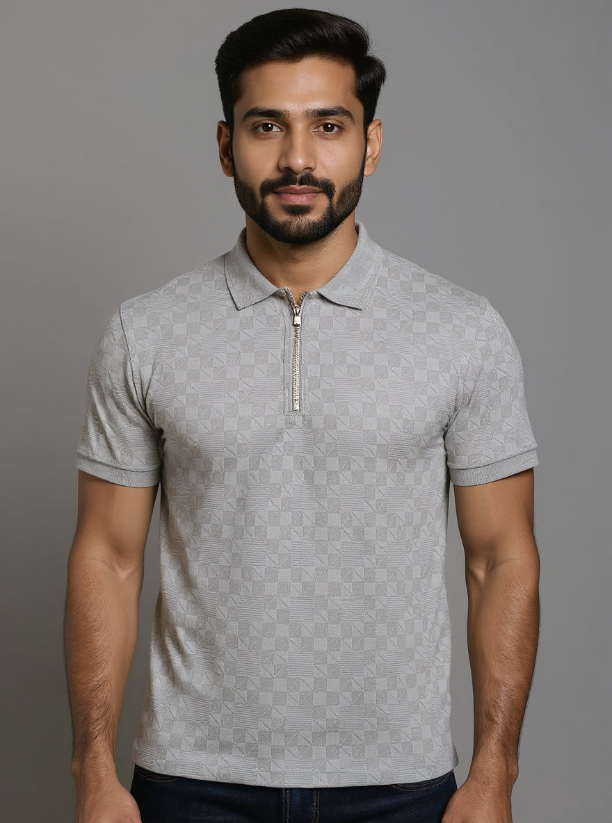 Men's Slim Fit Printed Nativebull T-Shirt with Zipper Collar and Half Sleeves - Grey