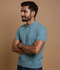 - Elevate your casual wardrobe with this stylish men's blue self design knitted Nativebull t-shirt made from cotton