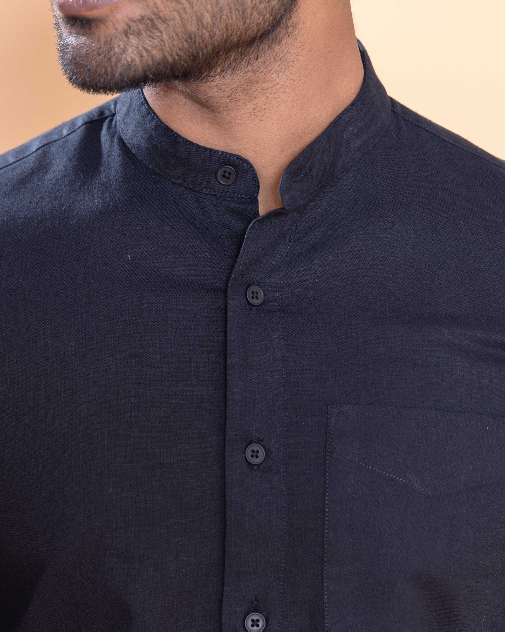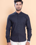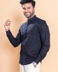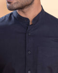 Nativebull Men Solid Full Sleeve Cotton Shirt - Navy Blue