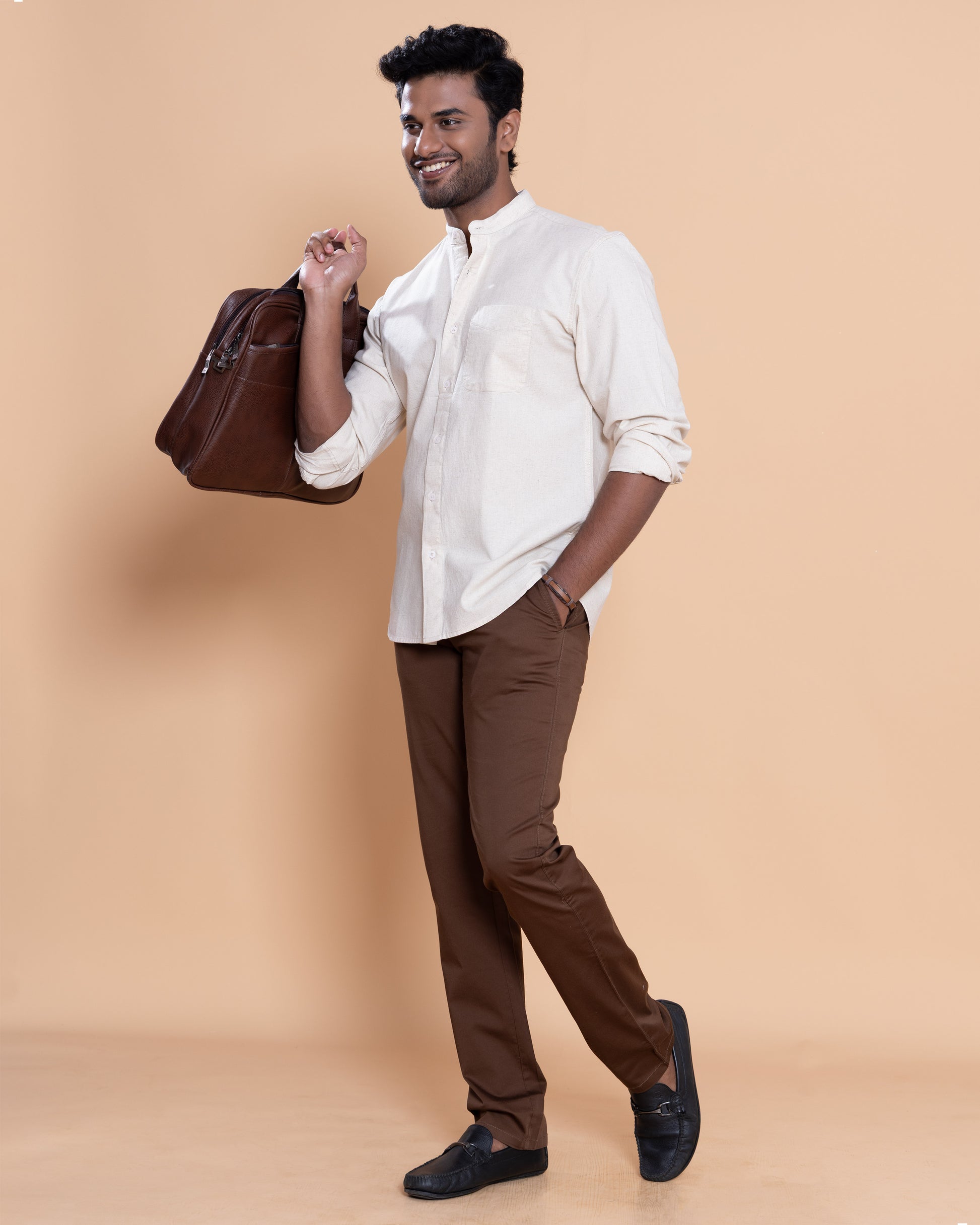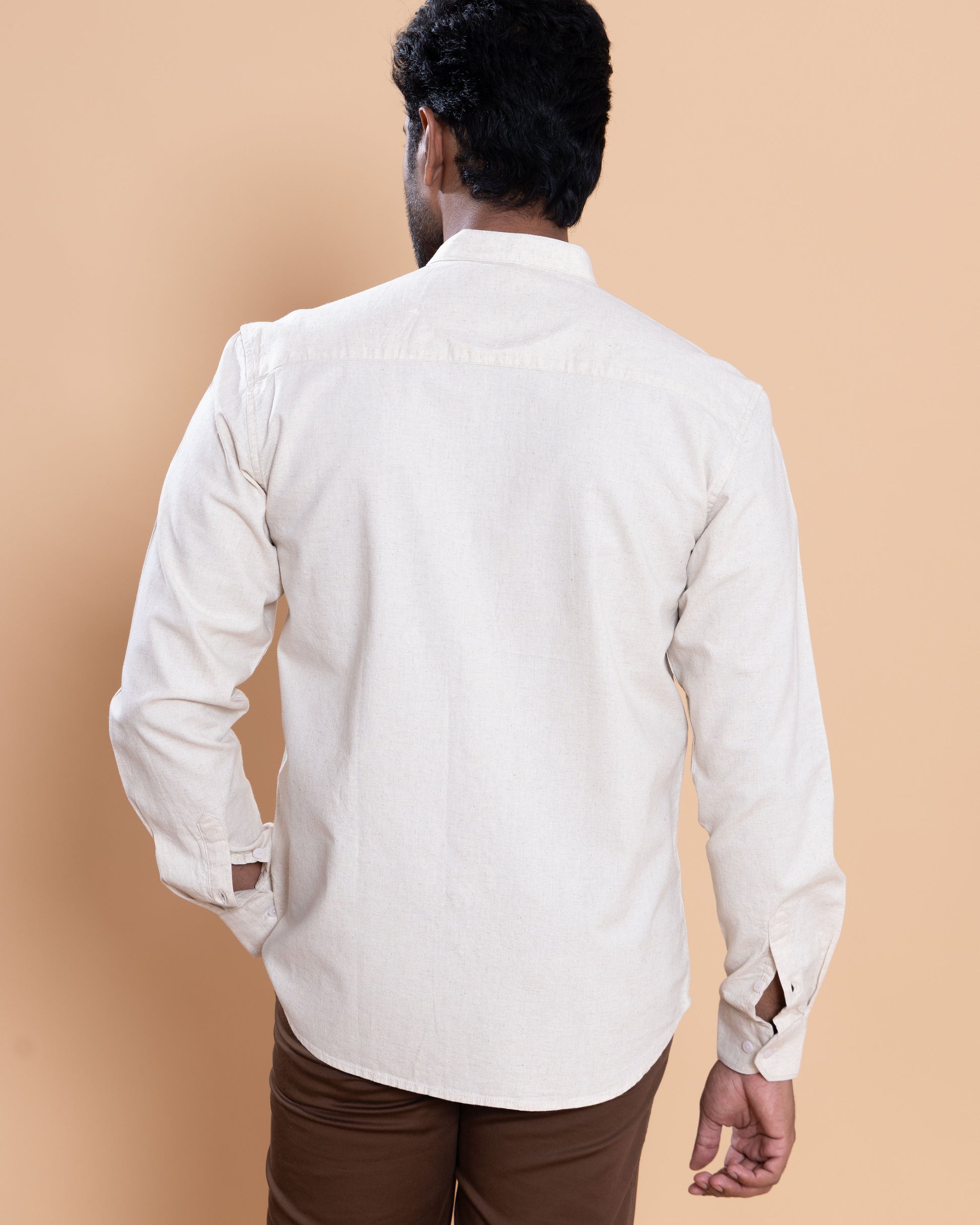 Nativebull Men Solid Full Sleeve Cotton Shirt - Off White